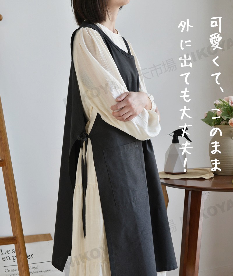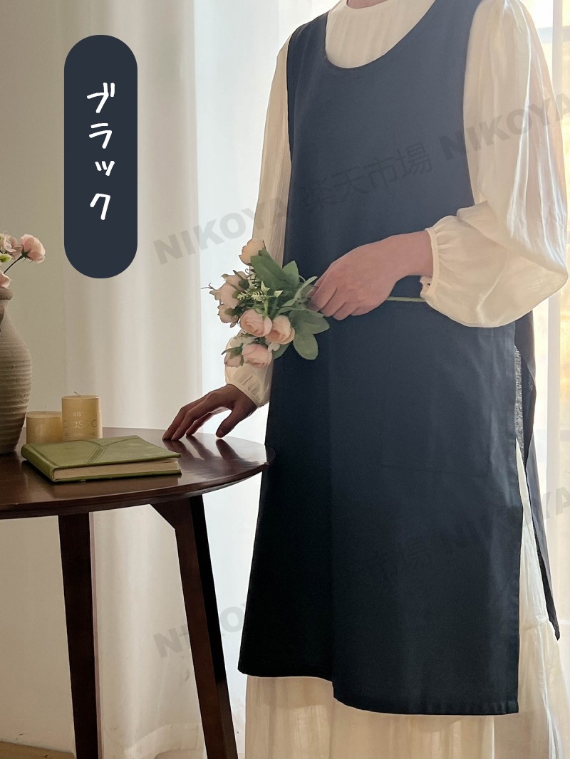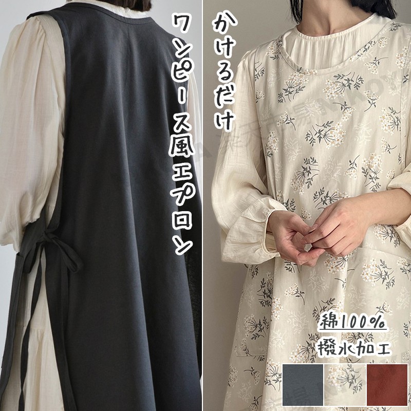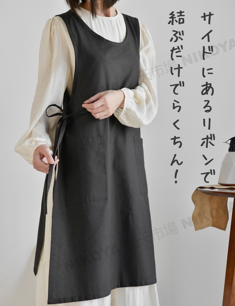 エプロン おしゃれ ワンピース 保育士 かわいい シンプル 撥水 かぶるだけ バッククロス オシャレ 北欧 綿 100% エプロンレディース 大きいサイズ 無地 撥水エプロン カフェエ ロングエプロン