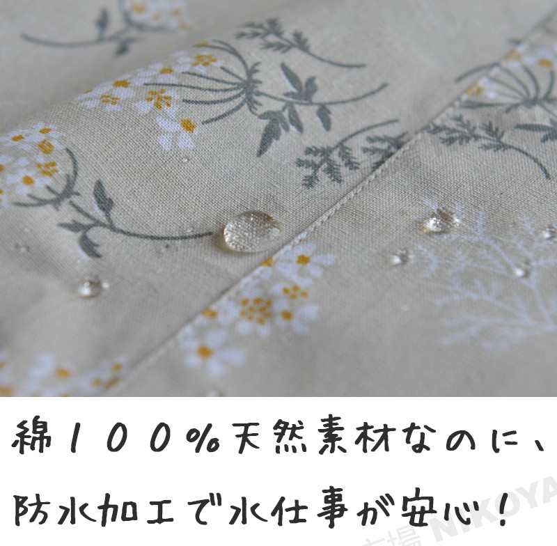 【綿100%素材】天然コットン100%のやわらかな風合いで優しい着心地!撥水加工も施され、食器洗いや洗車など水仕事にも安心です。