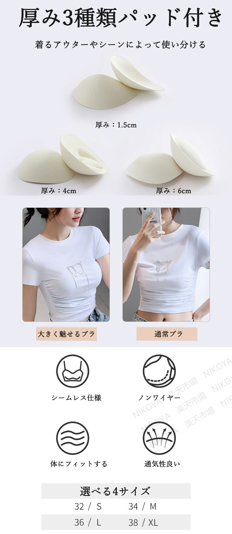 ブラジャー ブラ ノンワイヤー ノンワイヤーブラ ナイトブラ 盛りブラ 大きく見せるブラ 落ちない ずれない 盛れる 育乳 美乳 締め付けない 柔らかい 小胸さん 極厚パッド 小胸 痛くない
