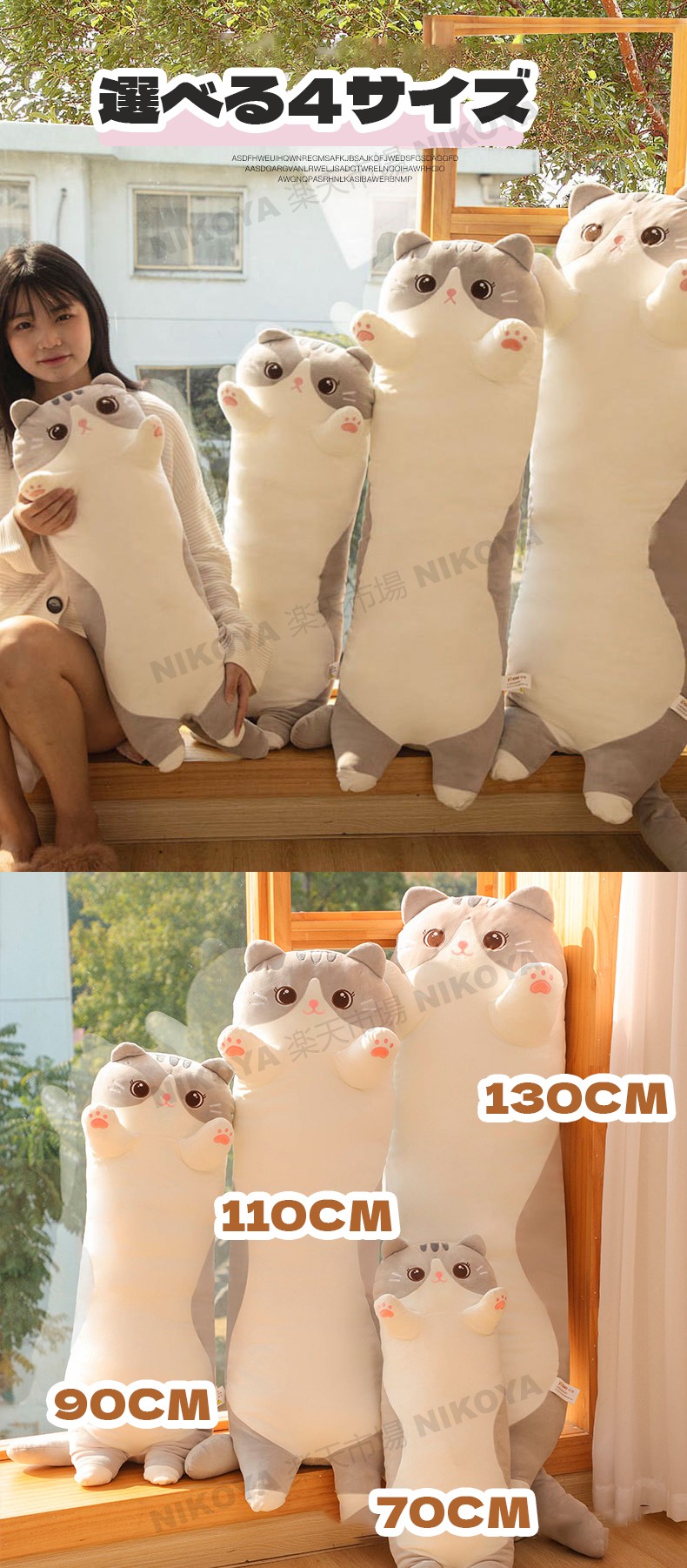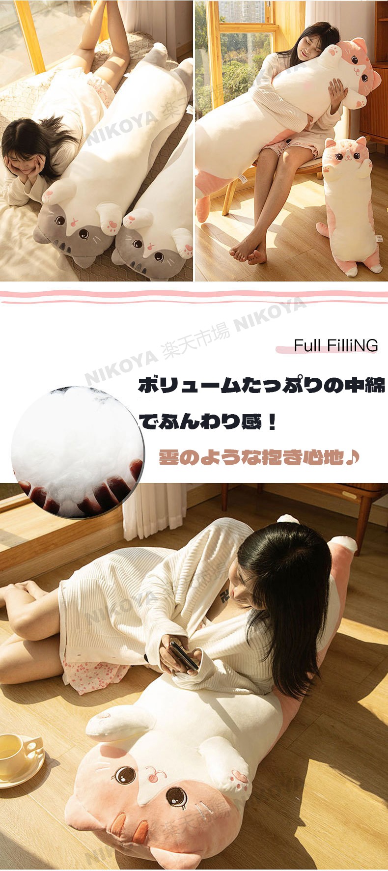 抱き枕 猫 ぬいぐるみ 大きい 特大 おもちゃ ぬいぐるみ 新作 ピンク/オールシーズンタイプ ピンク/ひんやりタイプ グレー/オールシーズンタイプ グレー/ひんやりタイプ 70cm 90cm 110cm 130cm