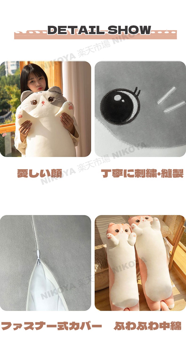 抱き枕 猫 ぬいぐるみ 大きい 特大 抱きまくら ねこ ネコ おもちゃ 昼寝枕 ねこぬいぐるみ ふわふわ もちもち 冷感 ロング枕 猫おもちゃ かわいい 妊婦 動物 柔らか クッション