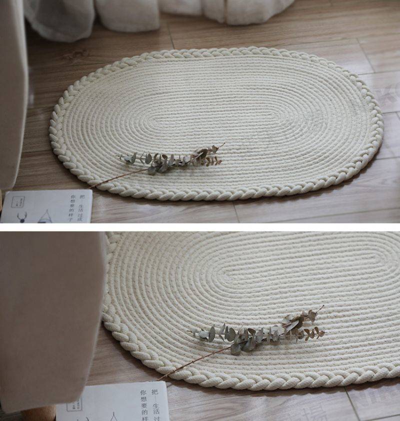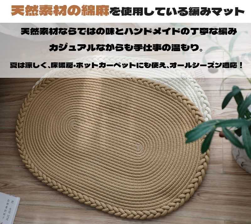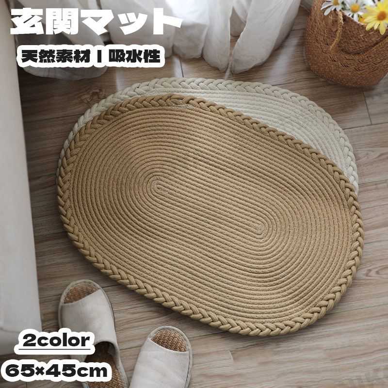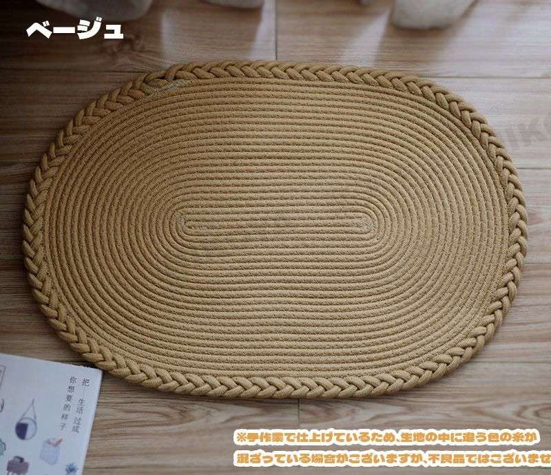 玄関マット 室内 フロアマット 手織り ベージュ オフホワイト