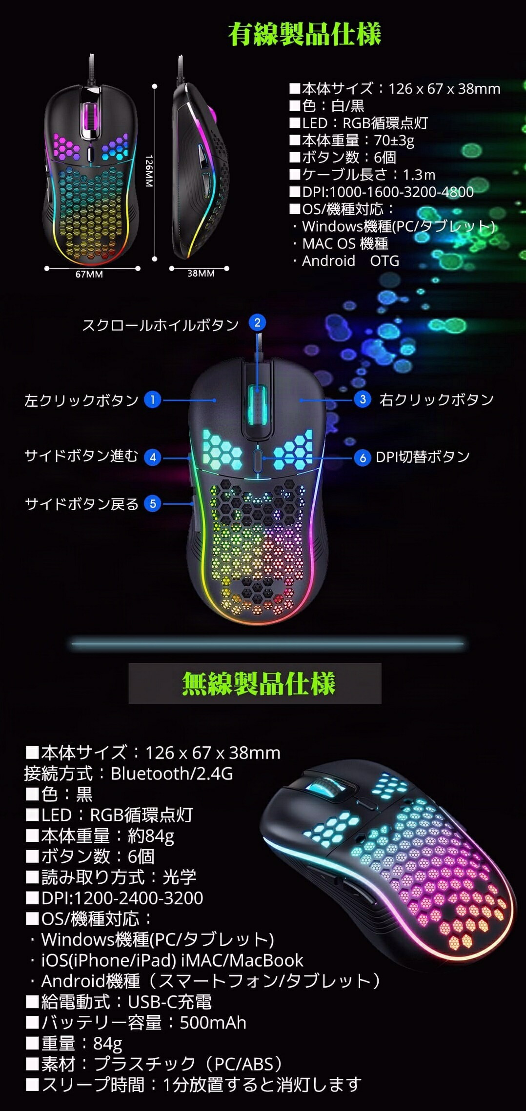 ゲーミングマウス マウス 無線 パソコ 有線マウス 【ブラック】 有線マウス 【ホワイト】 ワイヤレスマウス 【ブラック】