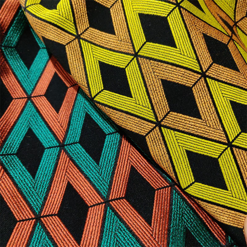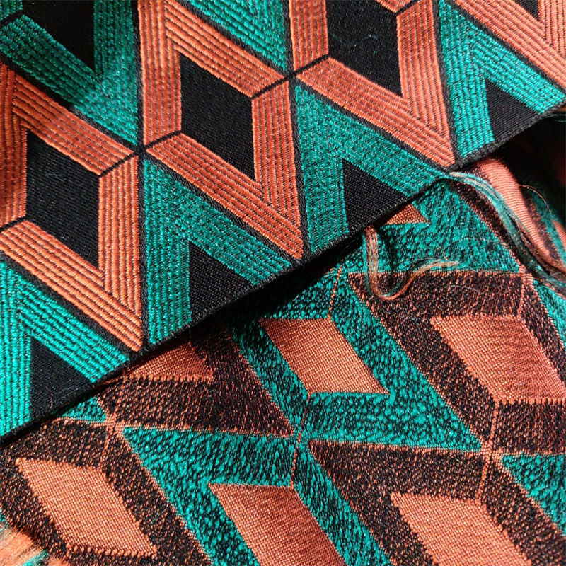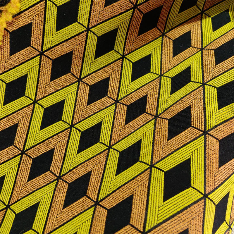 幅155cm 長さ95cm+95cm 生地 布 布地 ぬの きじ ジャカード生地 イエロー オレンジ グリーン 菱形