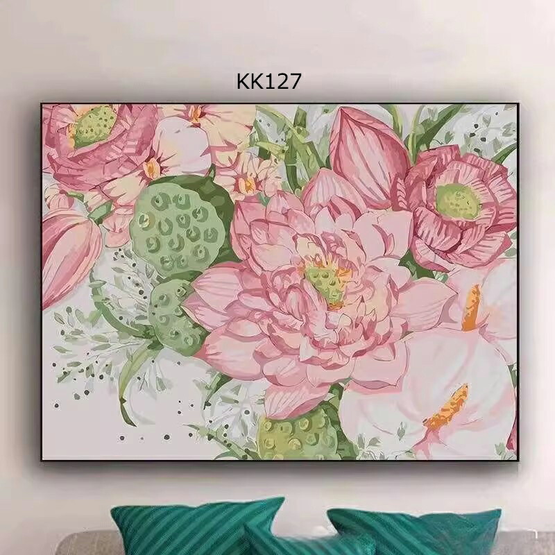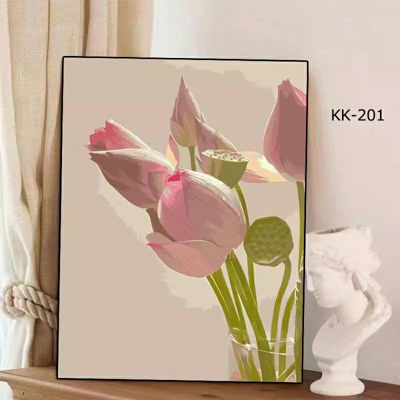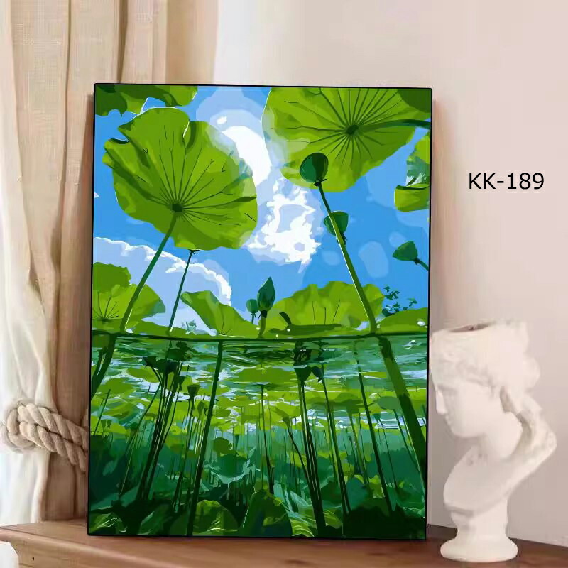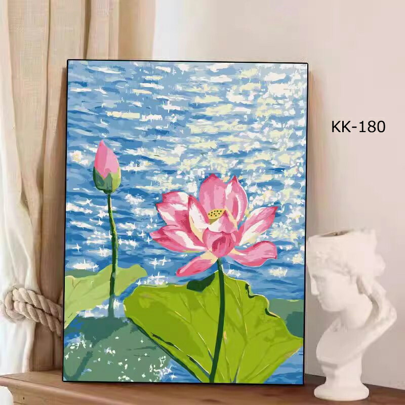 塗り絵 数字 油絵 数字塗り絵 数字油絵セット 大人の塗り絵 ぬりえ インナーフレーム付 初心者向け 油絵風 絵画 美術品 DIY絵 インテリア お絵描き 花柄 蓮の花 蓮の葉 蓮花 植物柄