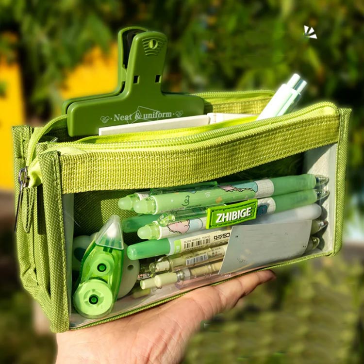 仕切り 大容量ペンケース かわいい ツ 日用品雑貨 文房具 手芸 特集 グリーン パープル アイボリー ブラック イエロー