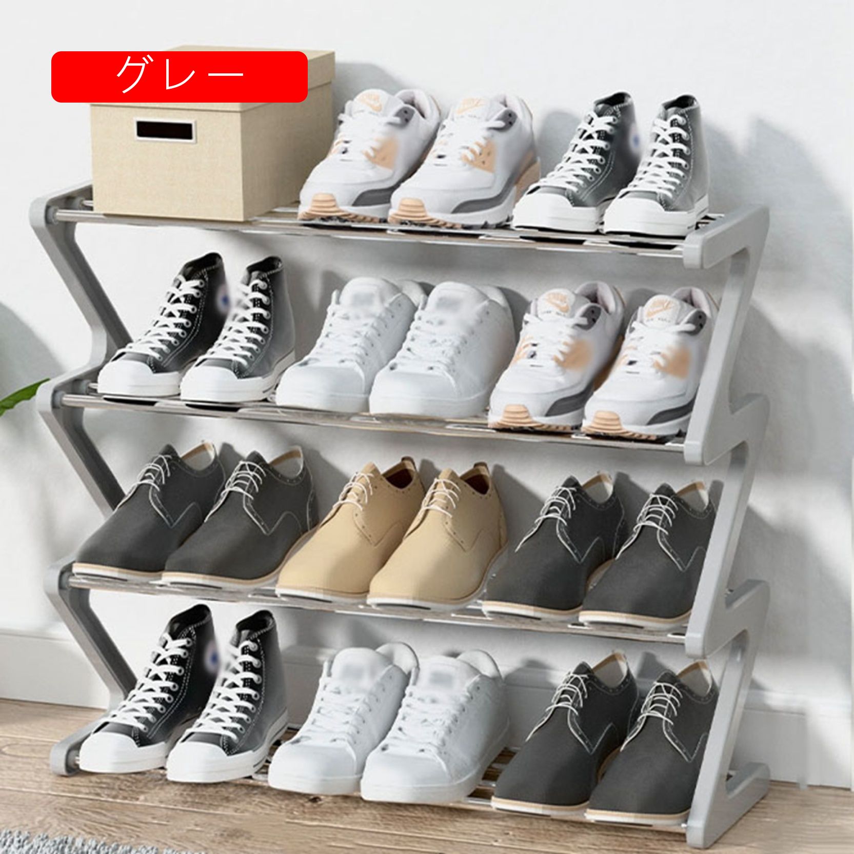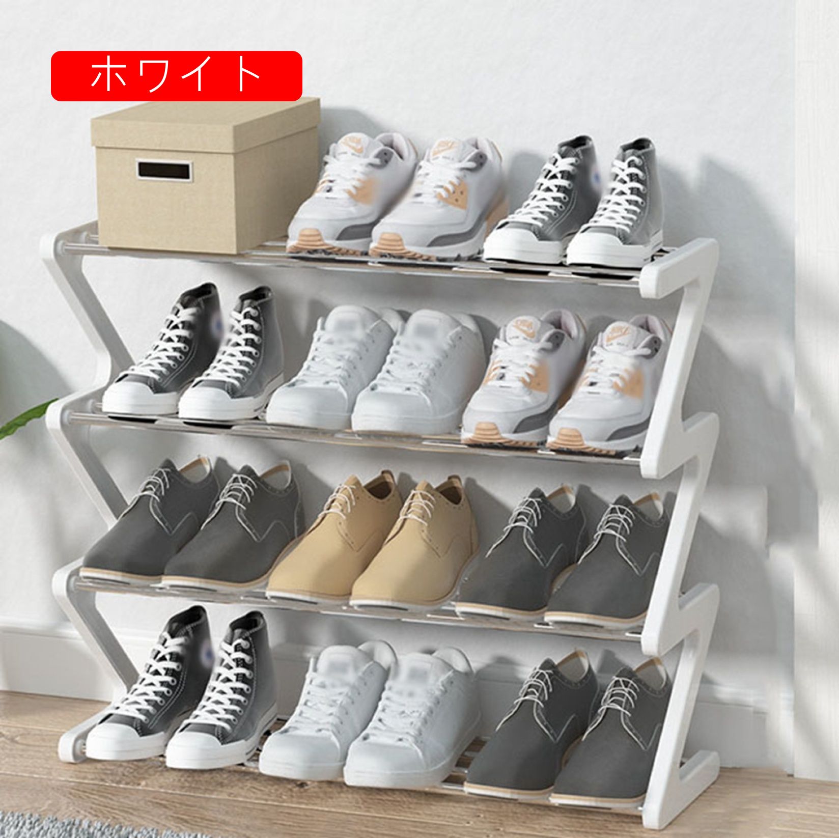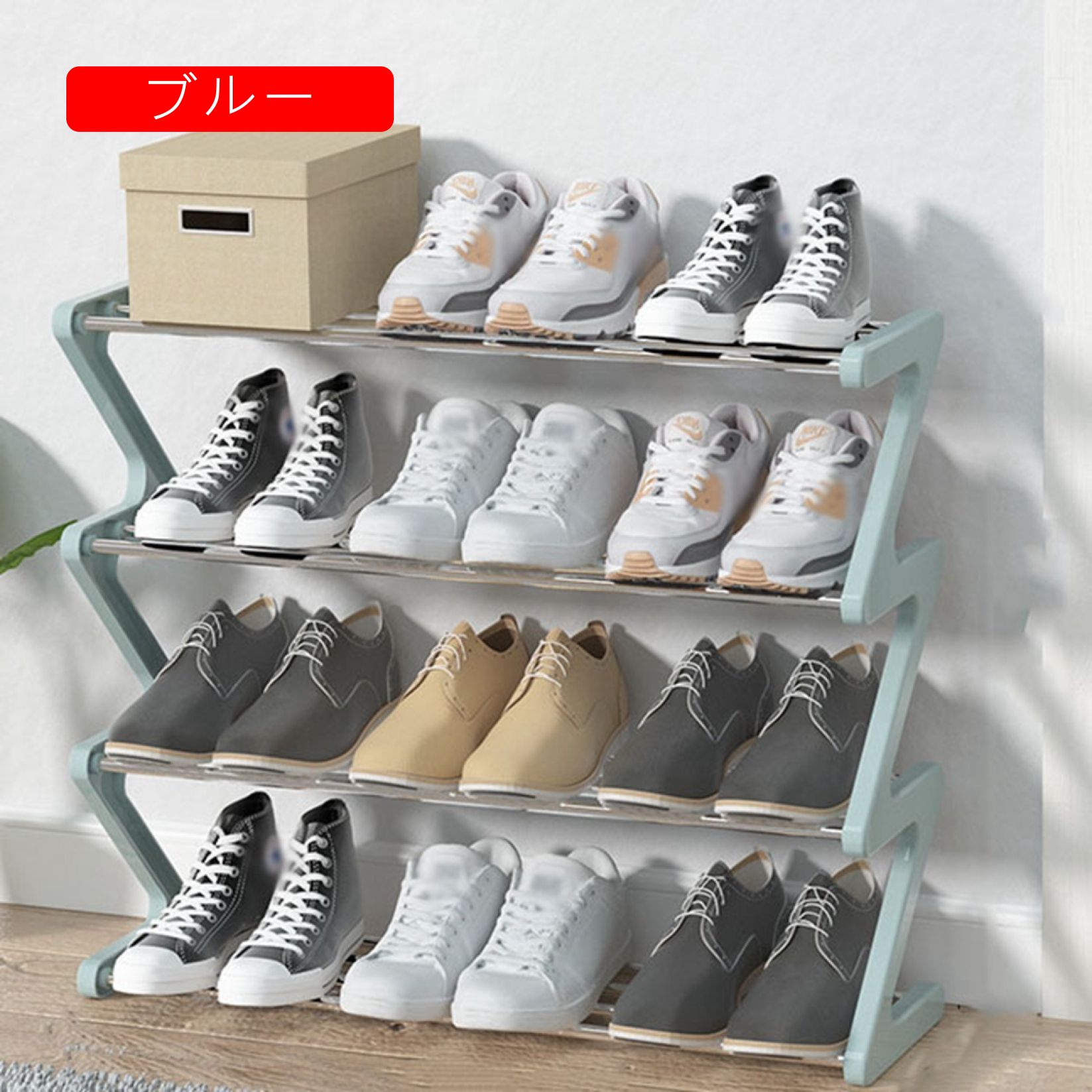 シューズラック 収納靴箱 簡易シューズ ホワイト グレー ブルー 長60cm 長45cm