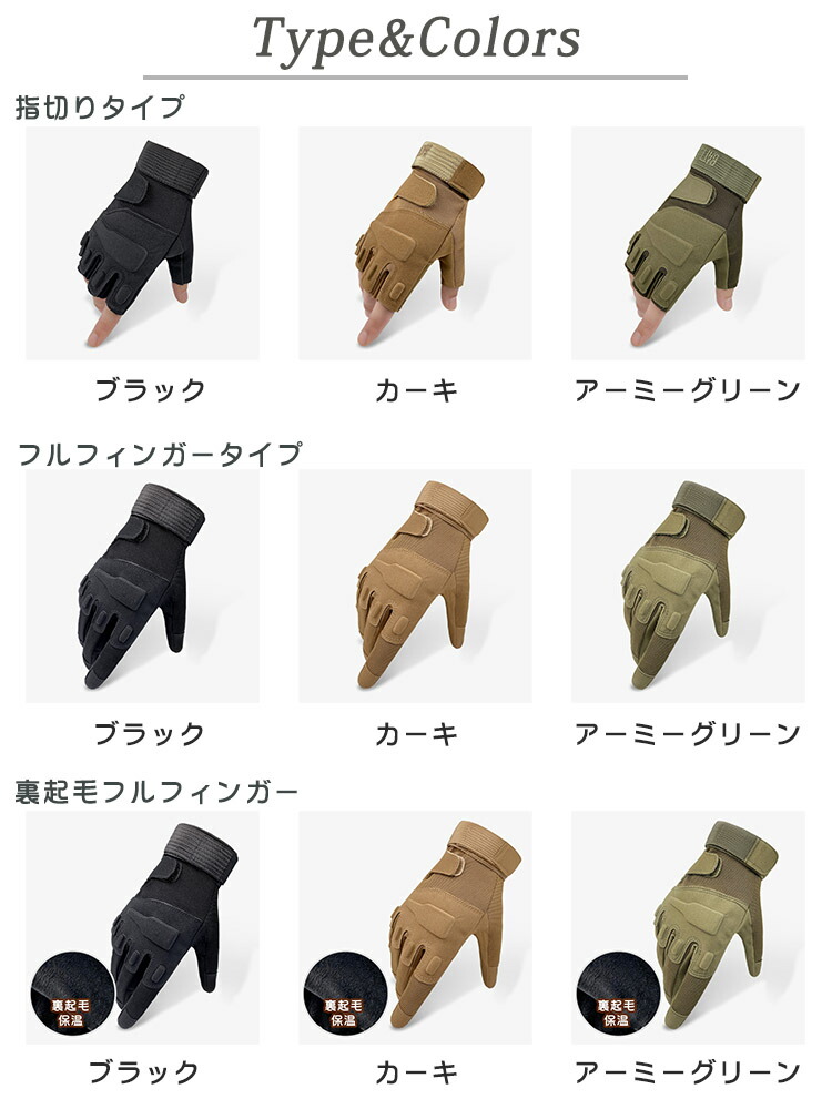 グローブ 手袋 バイク用グローブ 戦術 指切りタイプ/ブラック 指切りタイプ/カーキ 指切りタイプ/アーミーグリーン フルフィンガータイプ/ブラック フルフィンガータイプ/カーキ フルフィンガー/アーミーグリーン 裏起毛フルフィンガー/ブラック 裏起毛フルフィンガー/カーキ 裏起毛フル/アーミーグリーン M L XL