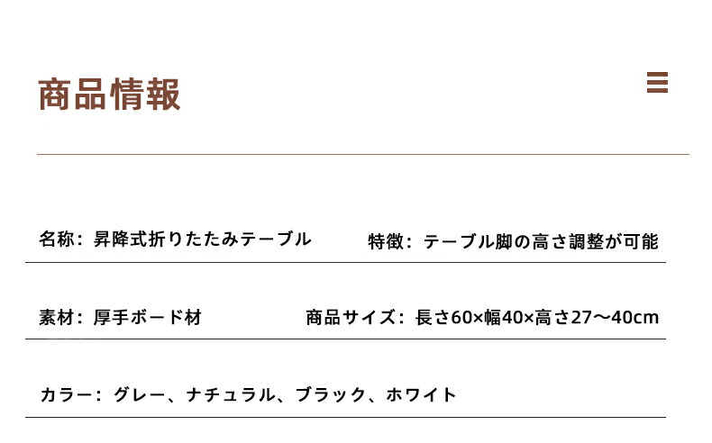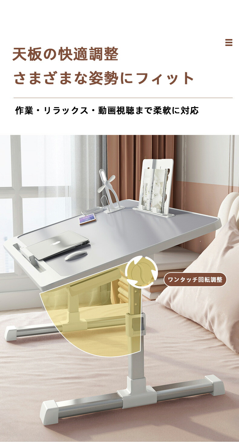 折りたたみ式 ベッドテーブル 昇降デス グレー(スタンダード) ナチュラル(スタンダード) ブラック(スタンダード) ホワイト(スタンダード) ホワイト(ハイエンド) グレー(ハイエンド) ブラック(ハイエンド) ナチュラル(ハイエンド)