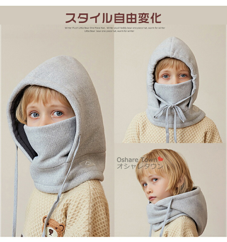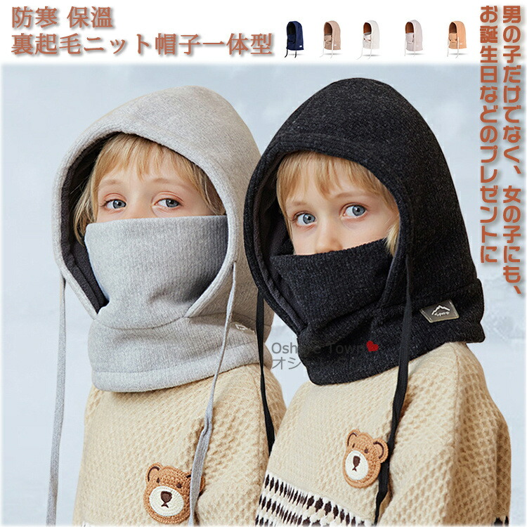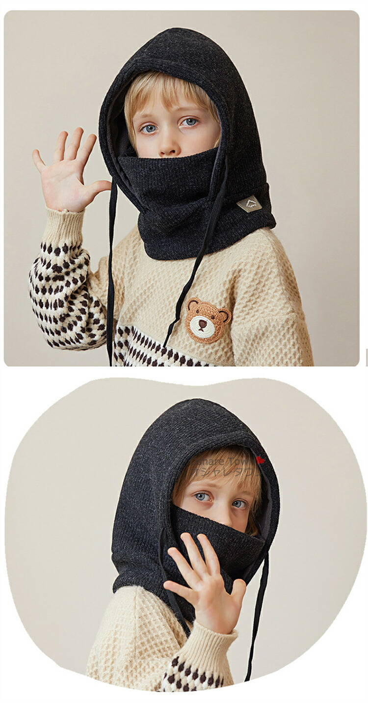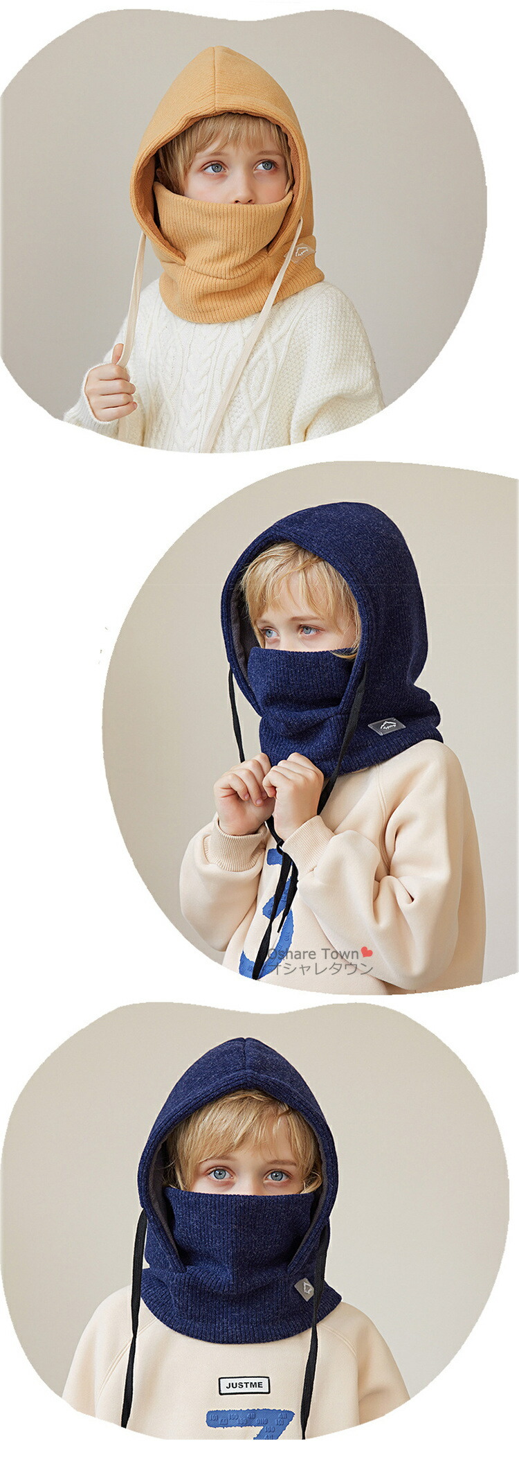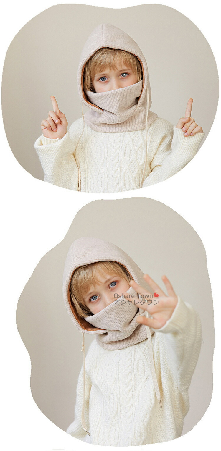 ニット帽 帽子 ネックウォーマー スヌード フェースカバー 単品一体型 裏起毛帽子 オシャレ カワイイ シンプル 柔らかい 春 秋 冬 快適 防寒 保温 暖かい あったか 子供 男の子 女の子 キッズ