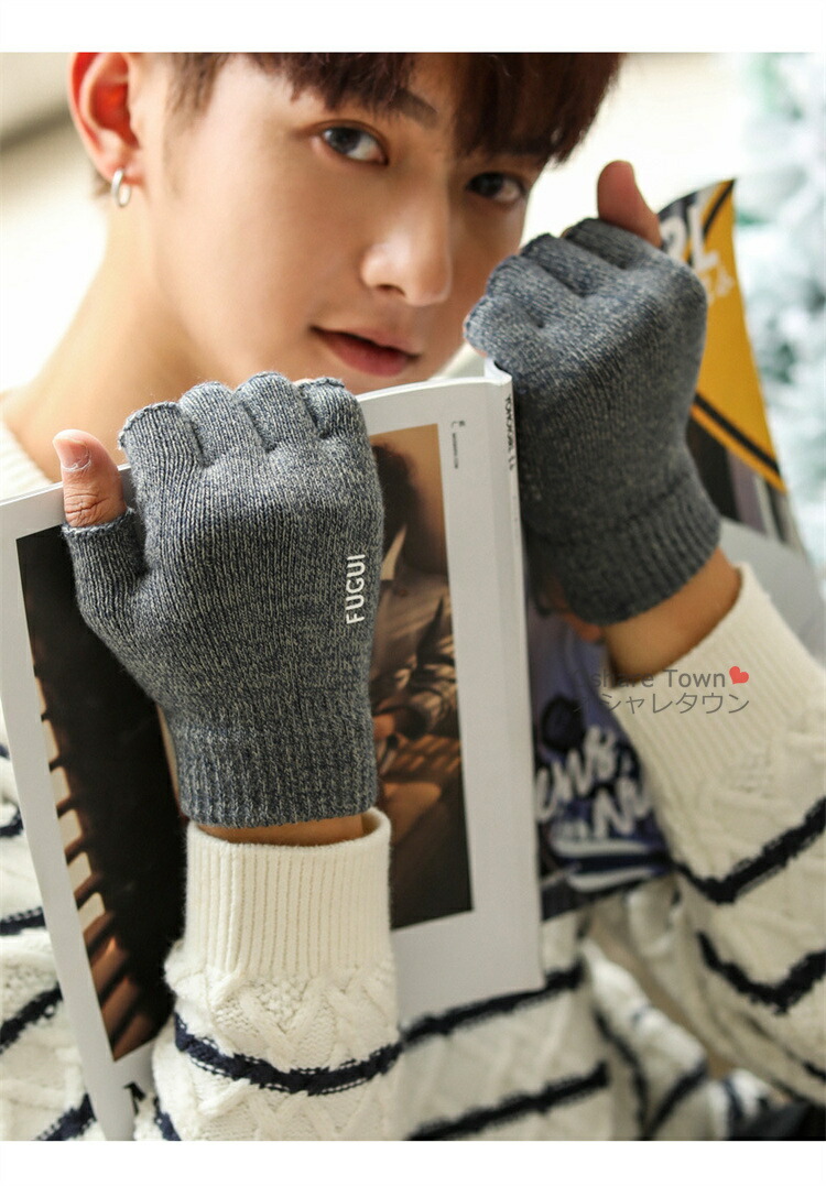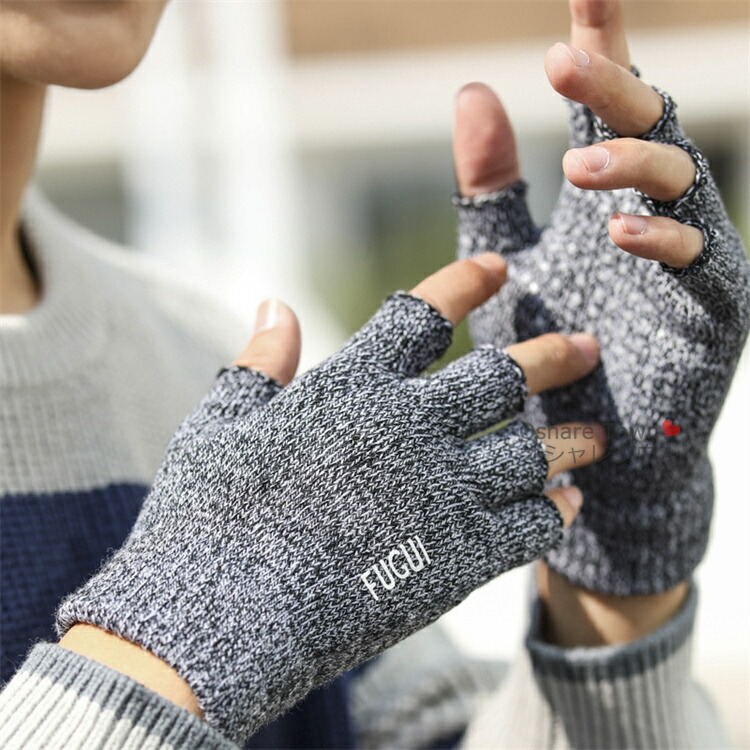 手袋 指切り手袋 ニット手袋 指切り 軽量 ニット カッコイイ 可愛い シンプル 柔らかい 春 秋 冬 防風 防寒 保温 暖かい 無地 メンズ レディース 男女兼用 ユニセックス 通勤 通学 カ 外出
