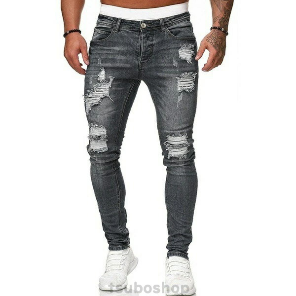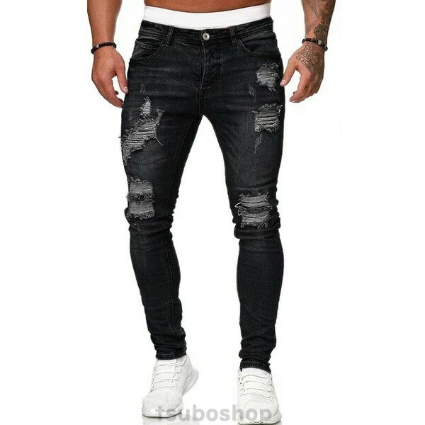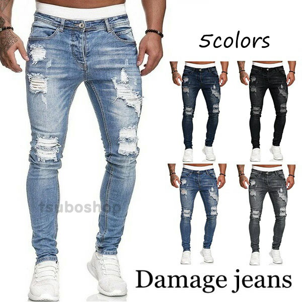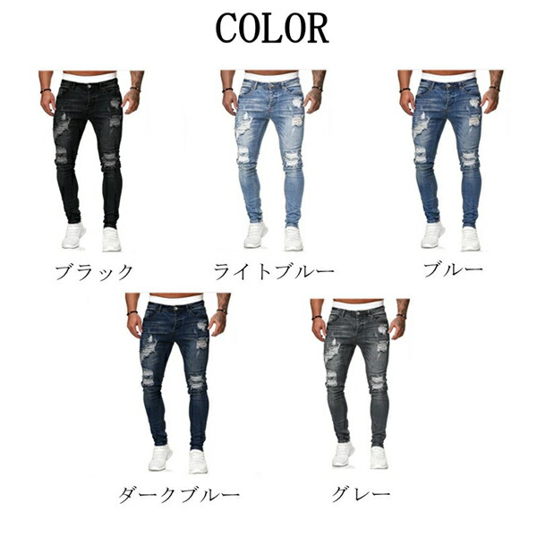 ダメージジーンズ メンズ 大きいサイズ ズボン パンツ 続々登場 S M L XL 2XL 3XL ブラック ダークブルー ライトブルー ブルー グレー