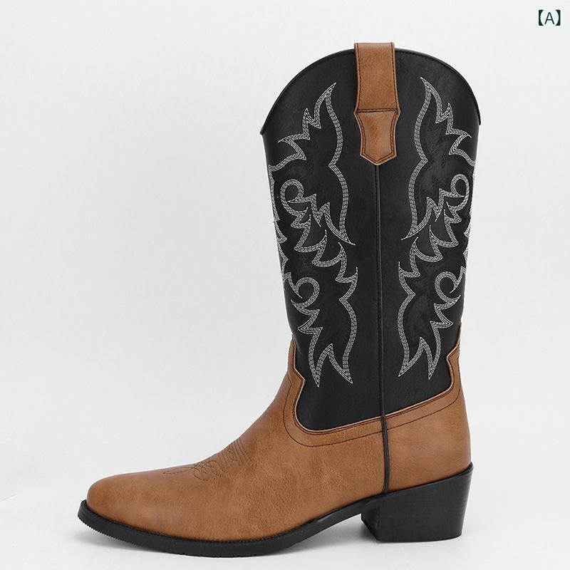ウエスタンブーツ メンズ 男性用 刺繍 靴 人気 A:茶 B:ベージュ C:黒 D:深茶 40 41 42 43 44 45 46 47 48