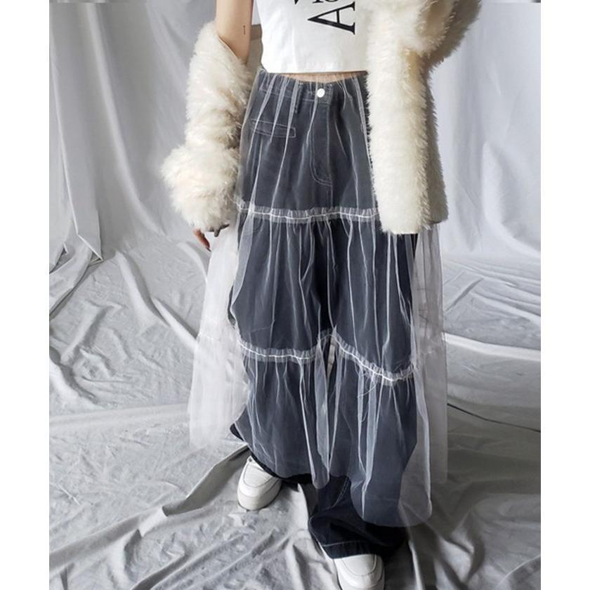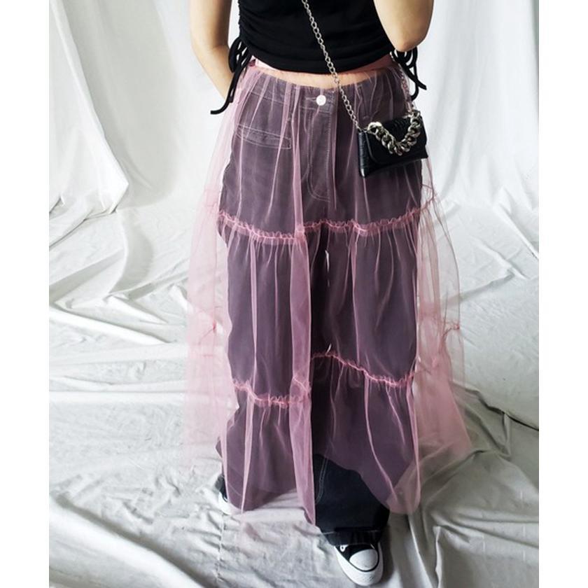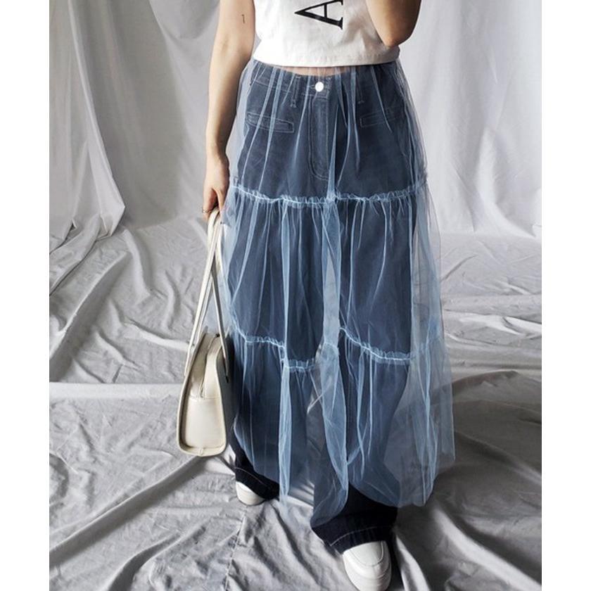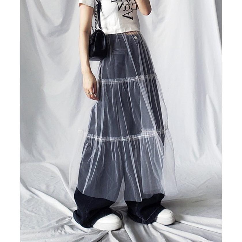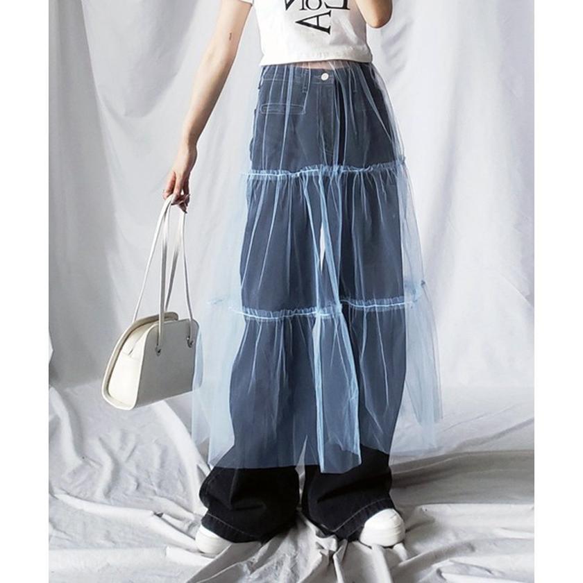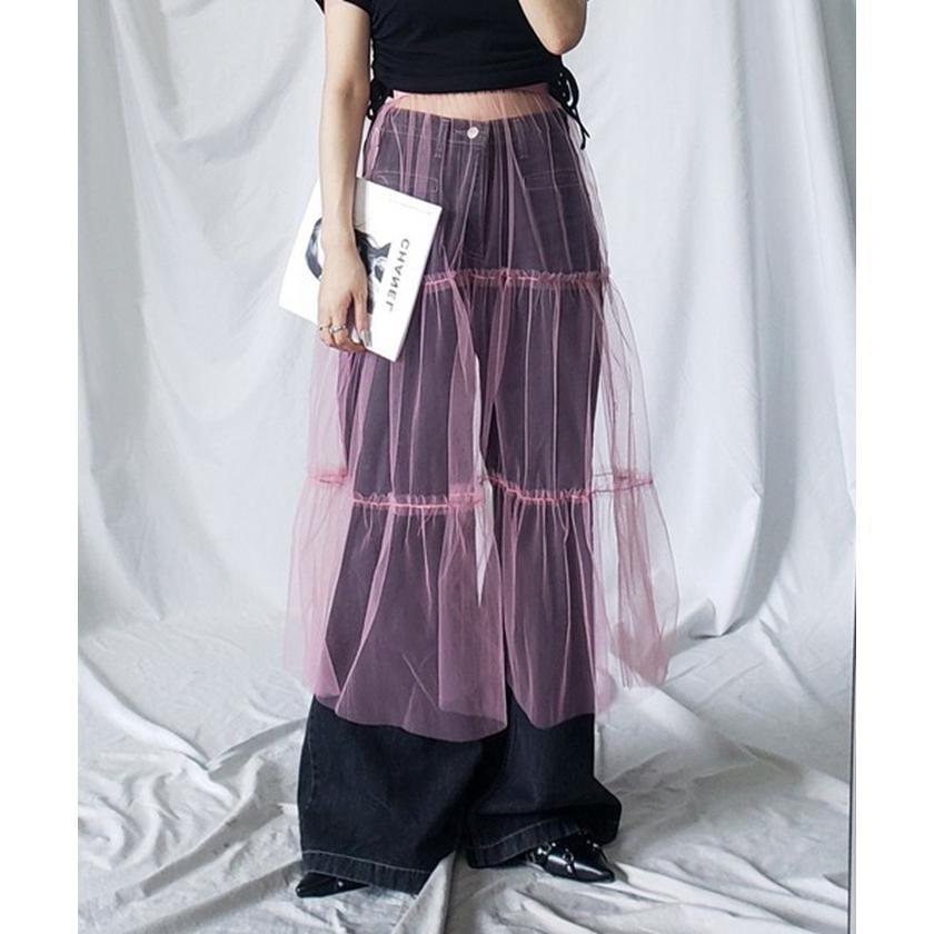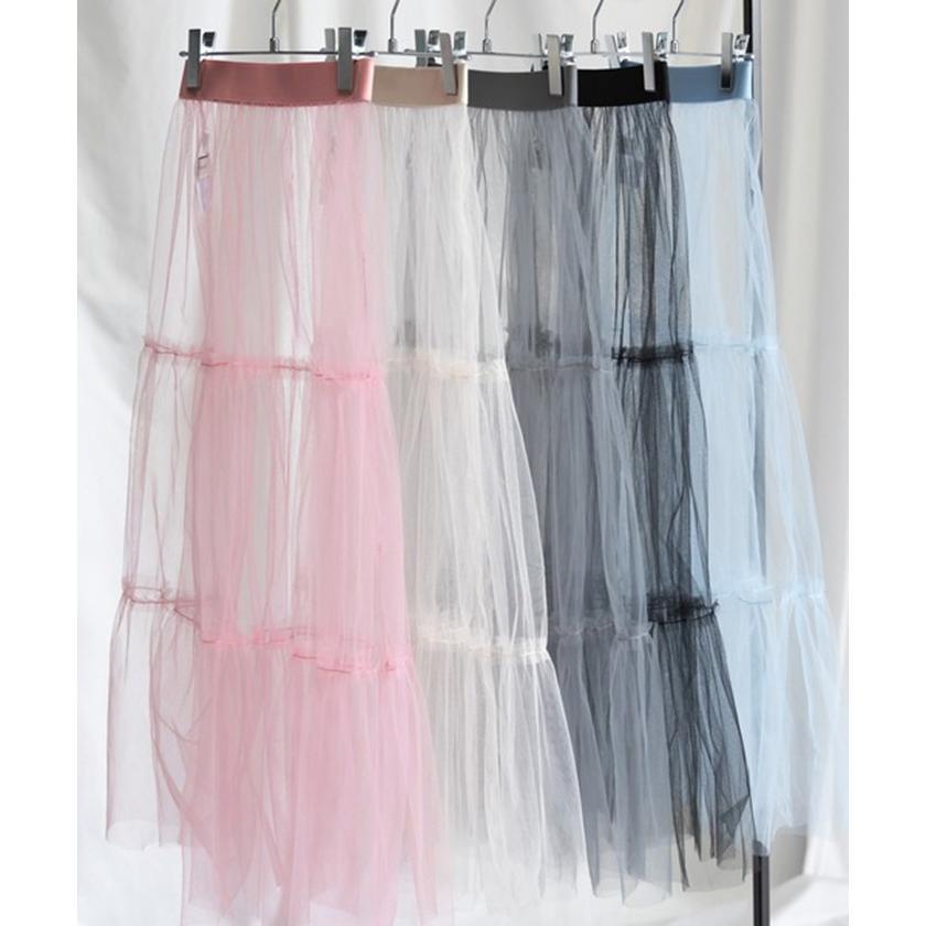 透け感 チュールスカート レディース レディースファッション 人気 ホワイト ブラック ピンク ブルー