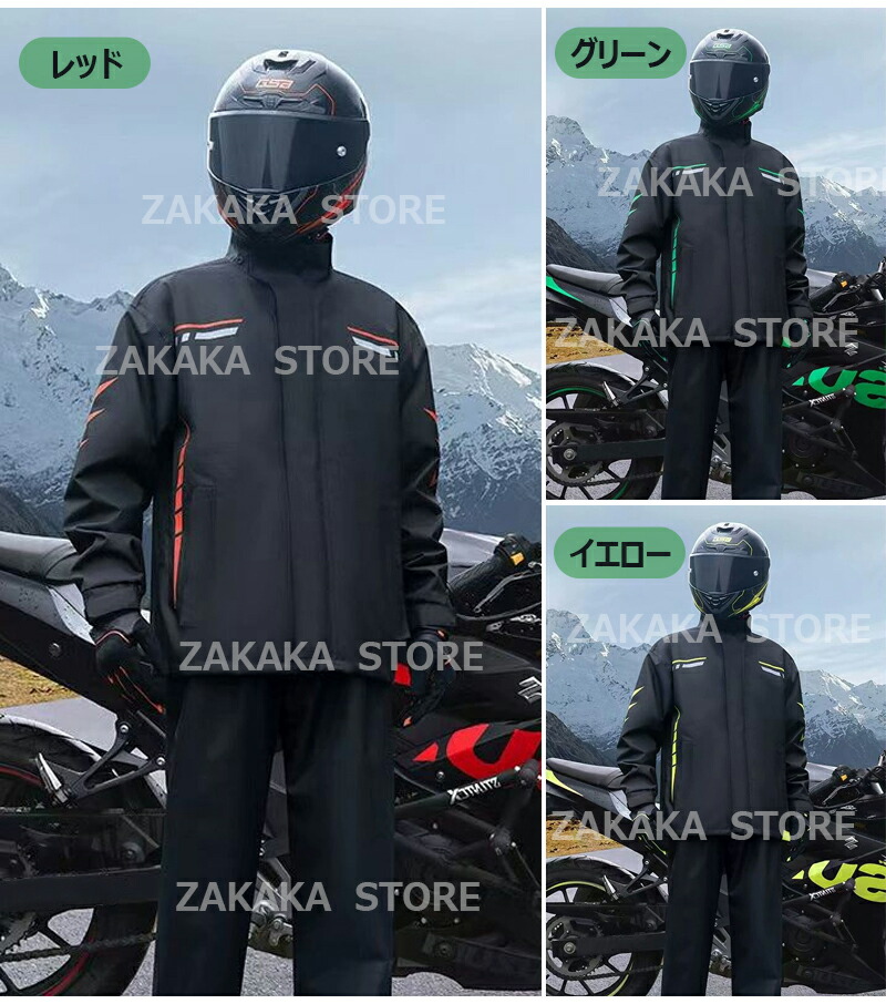 バイク用レインウェア メンズ 上下セッ メンズファッション 通販 レッド グリーン イエロー M L XL 2XL 3XL