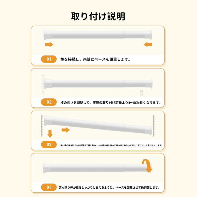 突っ張り棒 強力 70cm~410cm 70~110cm 110~160cm 160~210cm 210~260cm 260~310cm 310~360cm 360~410cm