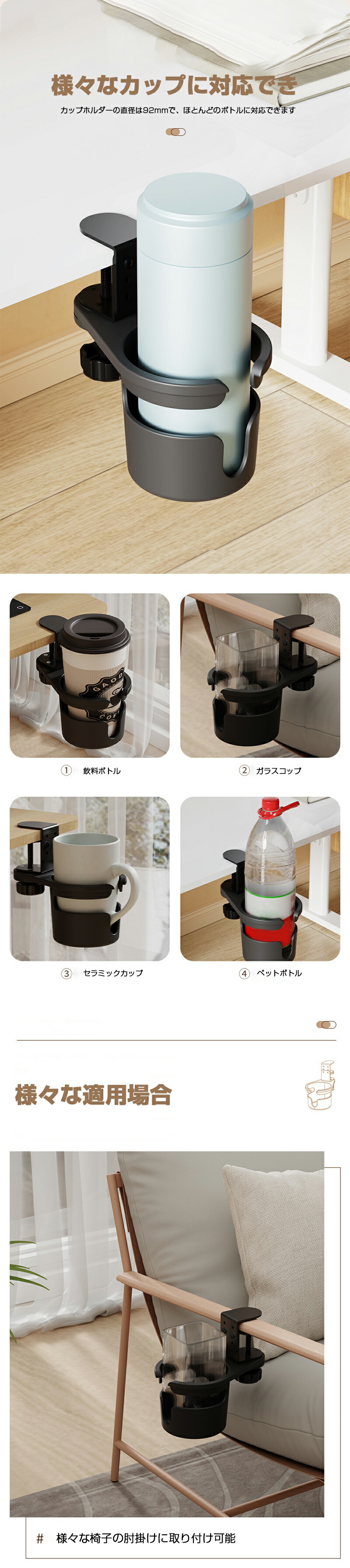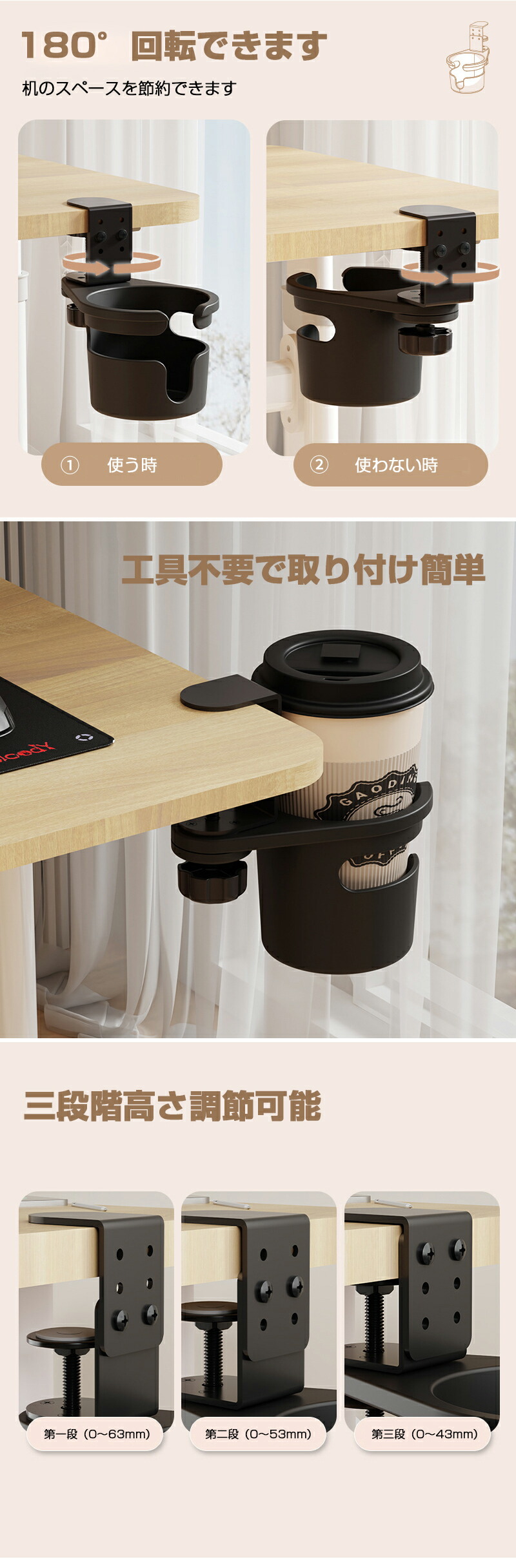 ドリンクホルダー デスク 机 工具 カ