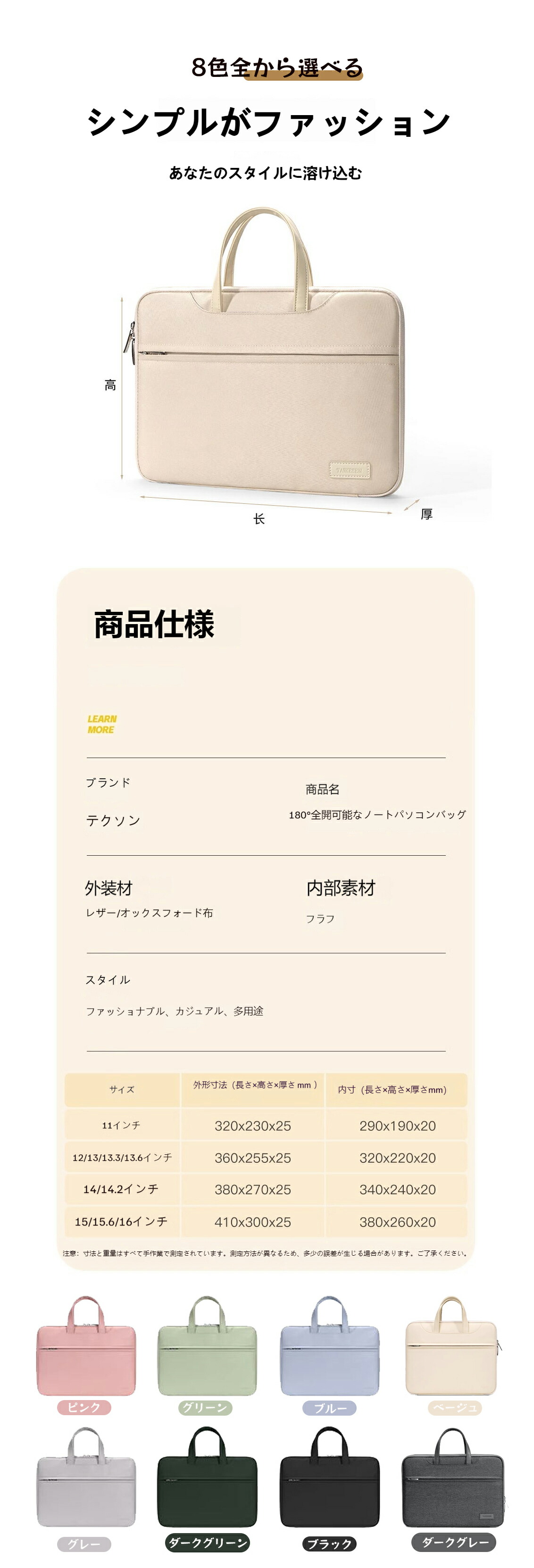 パソコンケース ノートパソコン 11イ 11インチ 12/13/13.3/13.6インチ 14/14.2インチ 15/15.4/15.6/16インチ カーキ ピンク グレー ブラック ダークグリーン ブルー グリーン ダークグレー