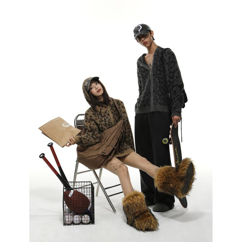 ヒョウ柄 レオパード アウター メンズ レディース 秋冬 アメリカン カジュアル レトロ ジャケット パーカーフード付き カーキ グレー ジップ