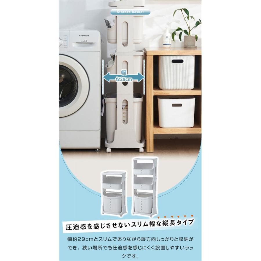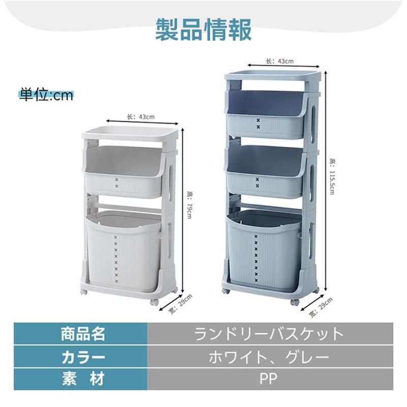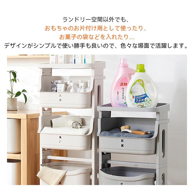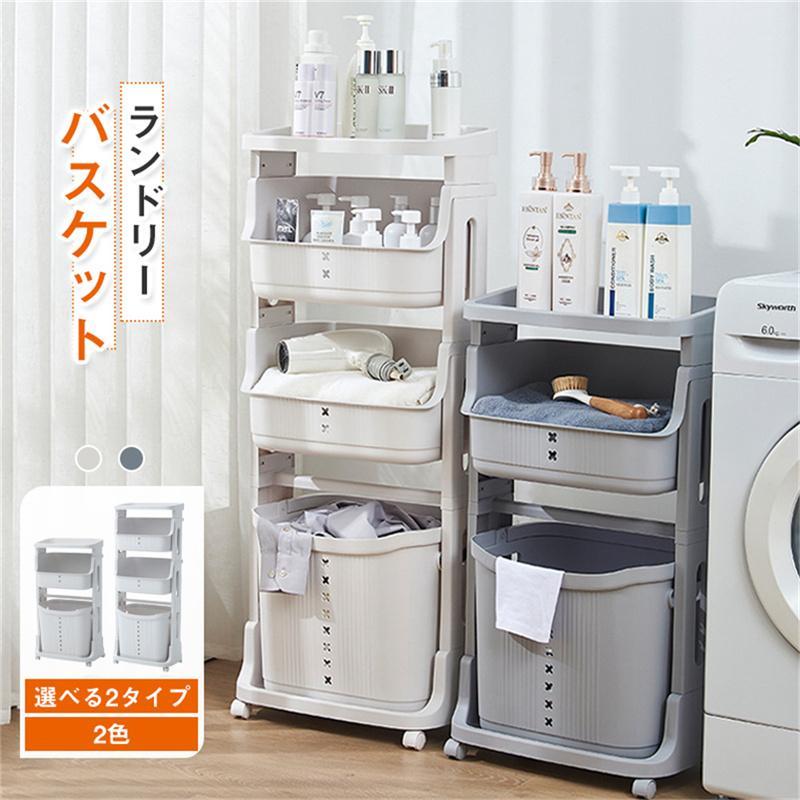 ランドリーバスケット スリム キャスタ ホワイト3段 ホワイト4段 グレー3段 グレー4段