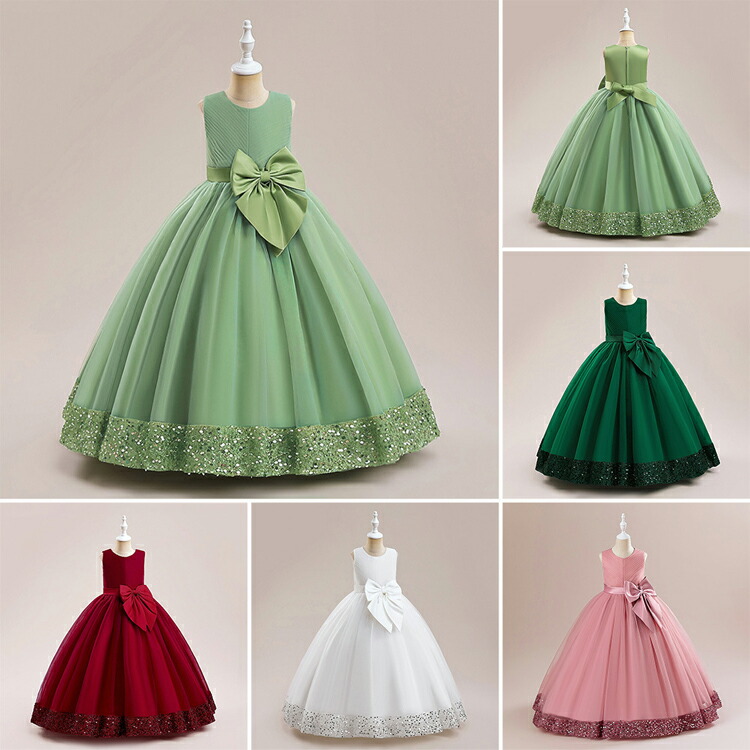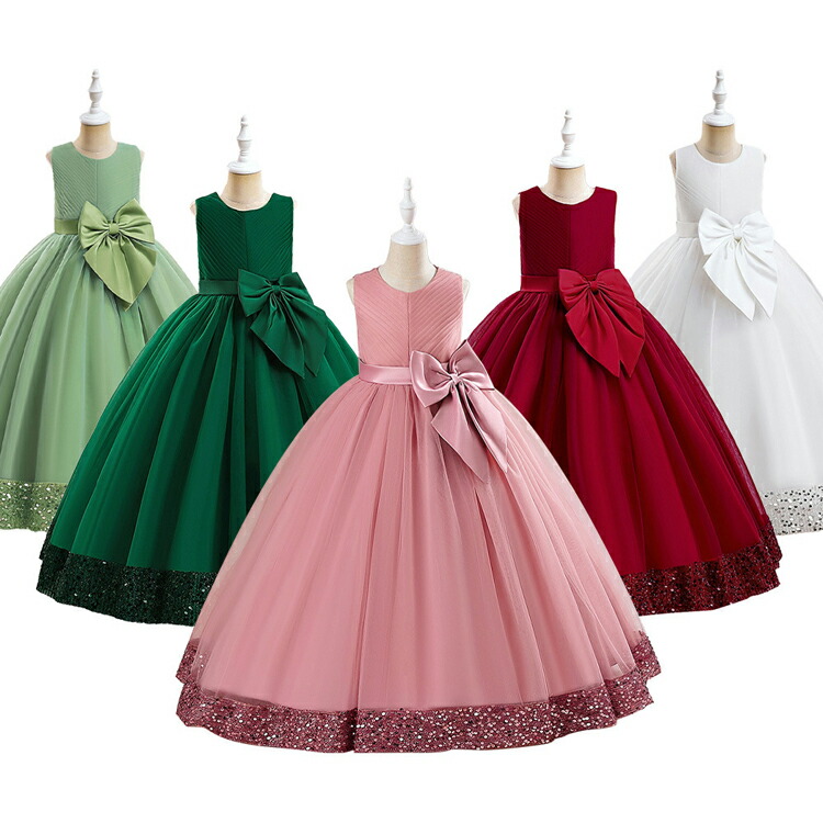 ドレス 子供服 女の子ドレス 5col キッズ ドレス 新作 120 130 140 150 160 170 ピンク レッド ホワイト グリーン ダークグリーン