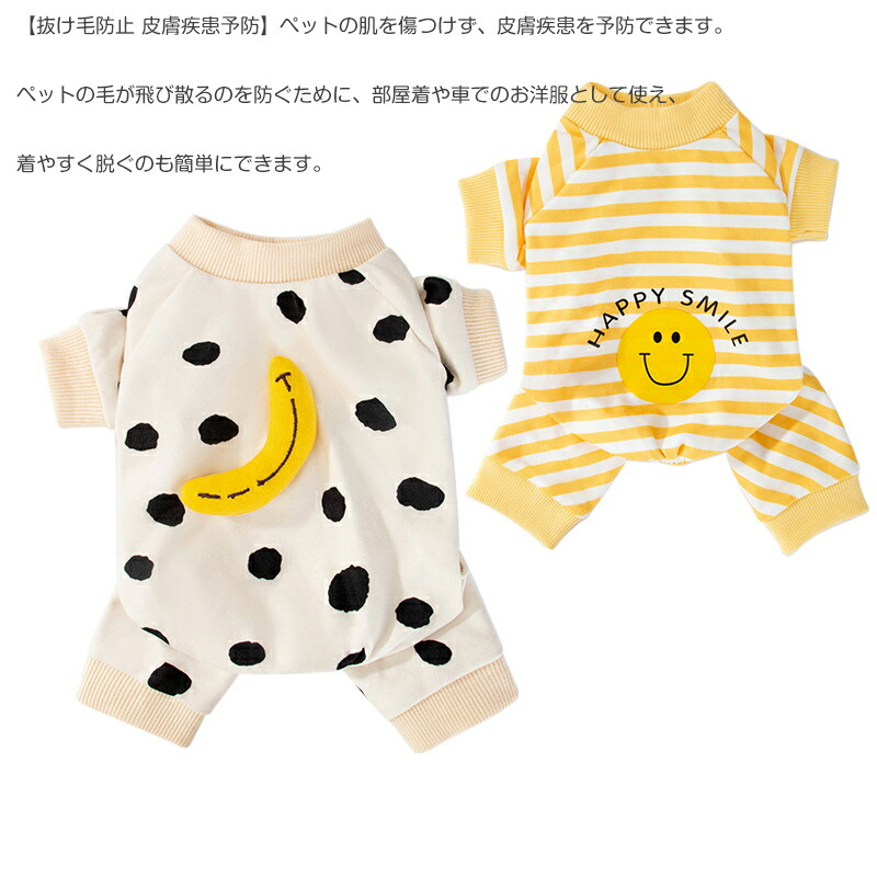 犬の服 ロンパース パジャマ つなぎ 犬用品 ドッグウェア Tシャツ カットソー 新登場! イエロー - 笑顔 水玉柄 - バナナ 森 - 小さなクマ カウボーイ - テディベア ストライプ - テディベア ピンクの耳 - ネズミ XS(1-2KG) S(2-3KG) M(3-4KG) L(4-6KG) XL(6-8KG) XXL(8-10KG)