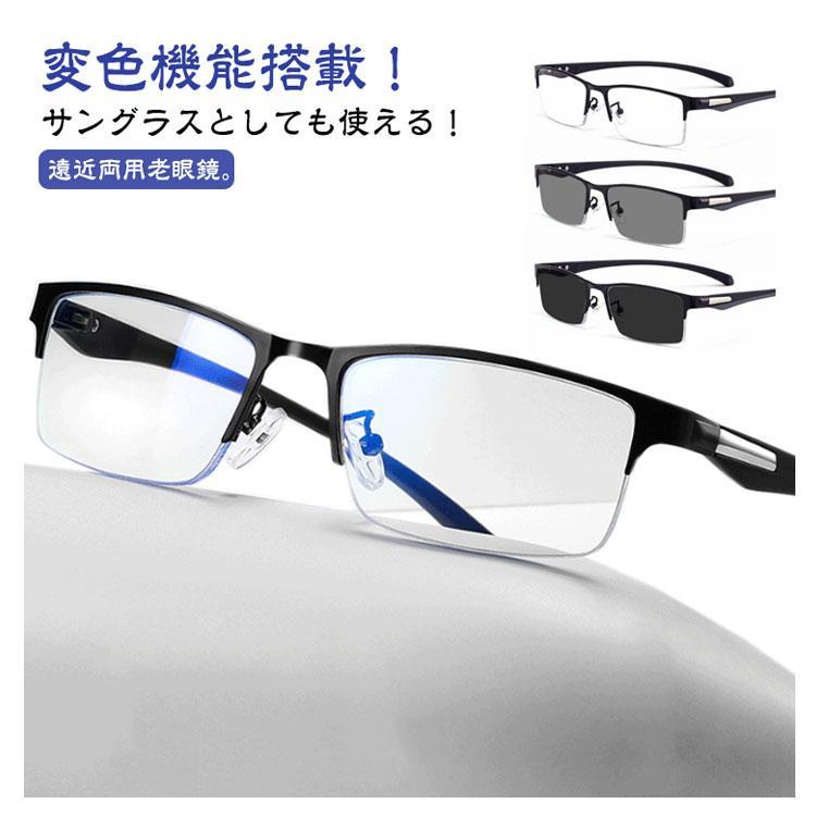 遠近両用メガネ 老眼鏡 遠近両用 変色 メガネ 調光 サングラス ブルーライトカット 累進多焦点レンズ 紫外線カット UVカット おしゃれ