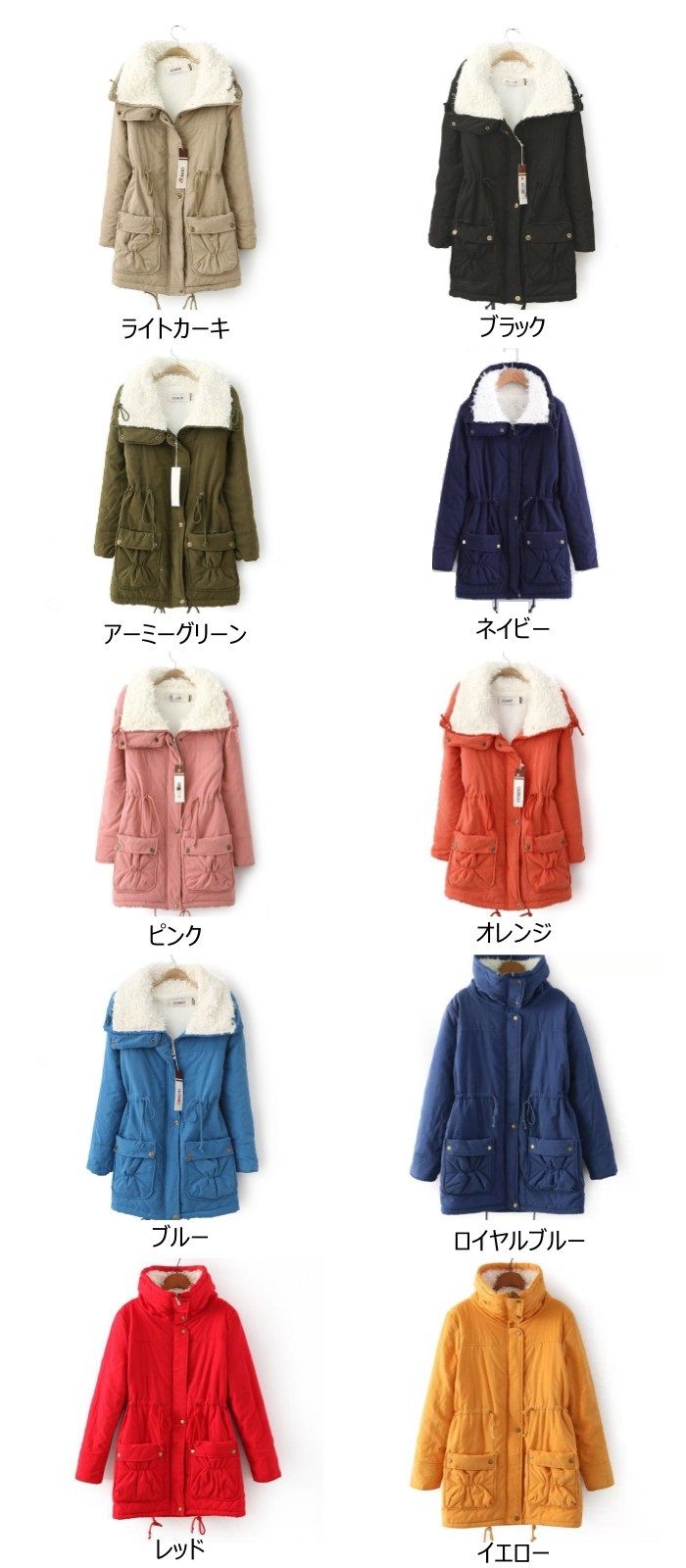 中綿ジャケット レディース 中綿コート コート ジャケット 豊富な品揃え ライトカーキ ブラック アーミーグリーン ネイビー ピンク オレンジ イエロー ブルー ロイヤルブルー レッド S M L XL 2XL 3XL