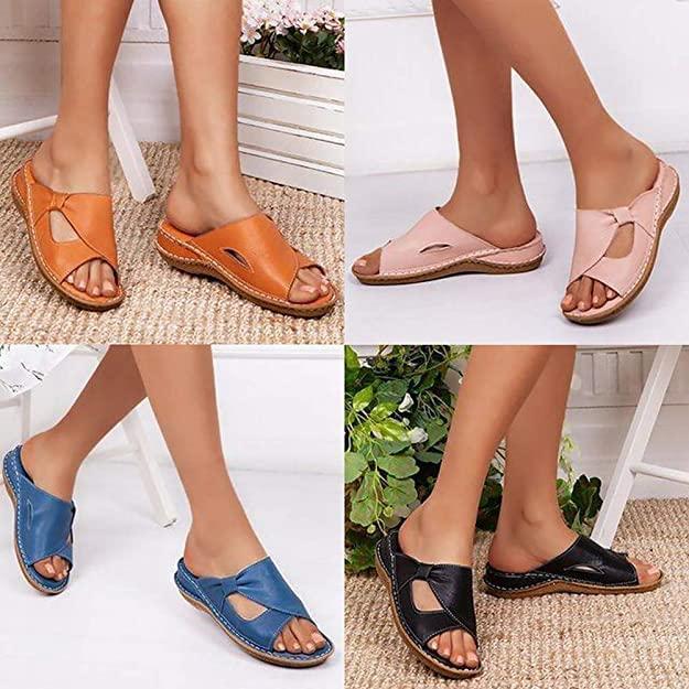 足底筋膜炎 扁平足 足の痛みを和らげるための女性用スリッパプラットフォーム装具スライドサンダルアーチサポート ブラウン 37CN