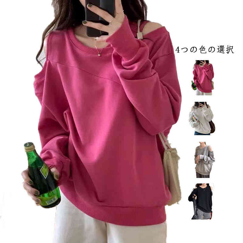 トレーナー 肩出し スウェット トップ トップス シャツ ブラウス 新登場! ホワイト グレー バラ色 ブラック M L XL 2XL