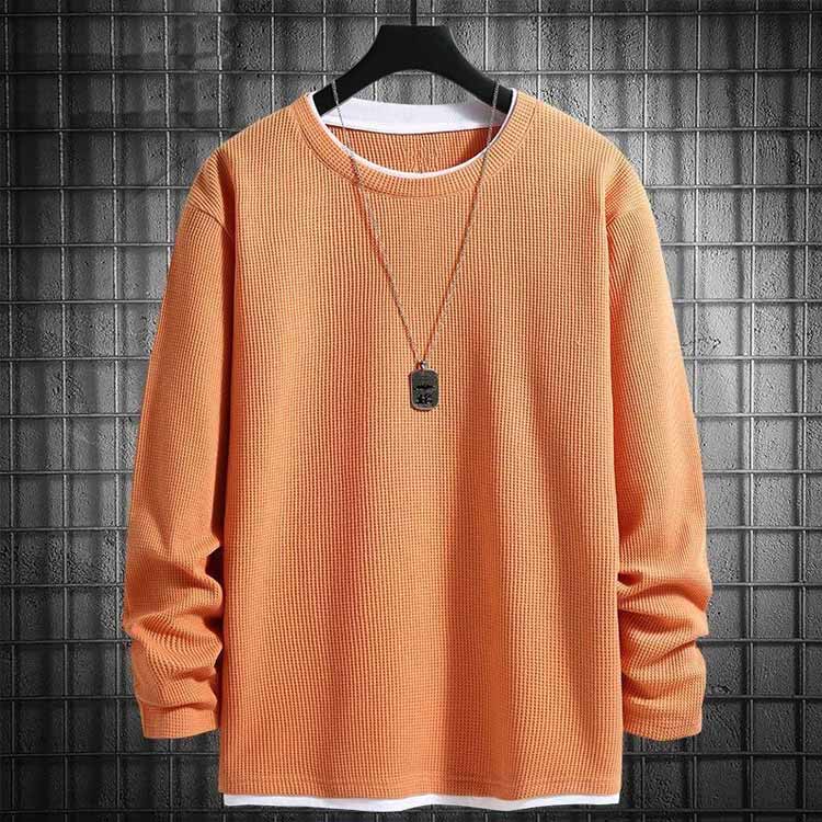 長袖 重ね着風 Tシャツ レイヤード風 メンズファッション 通販 ベージュ+ライトグレー ライトグレー+ブルー ブラック+ベージュ ブラック+ライトグレー ブラック+ブルー ブラック+オレンジ ベージュ+ブルー ベージュ+オレンジ ライトグレー+オレンジ ブルー+オレンジ M L XL 2XL 3XL 4XL 5XL