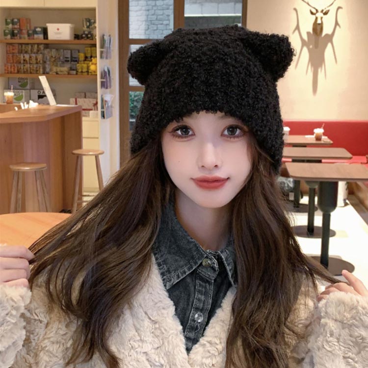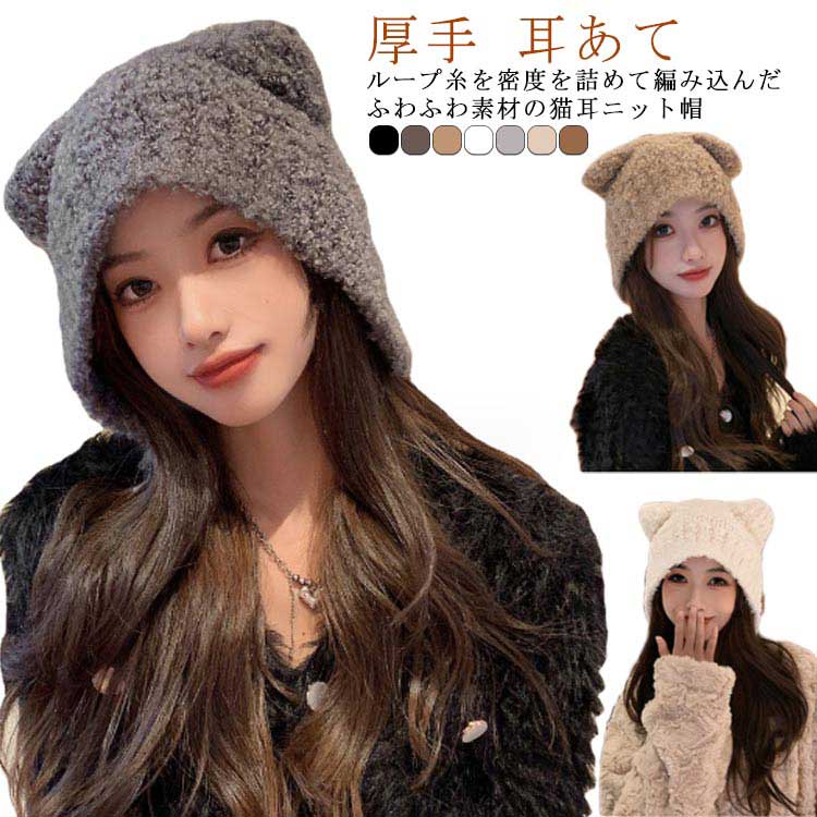 ニット帽 レディース ネコ耳 猫耳 イ 帽子 レディース帽子 ニット帽 人気 ブラック ダークグレー カーキ オフホワイト ライトグレー ベージュ キャラメル