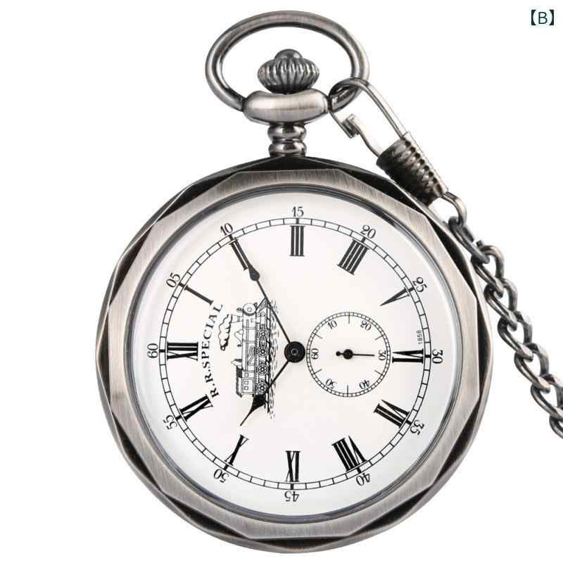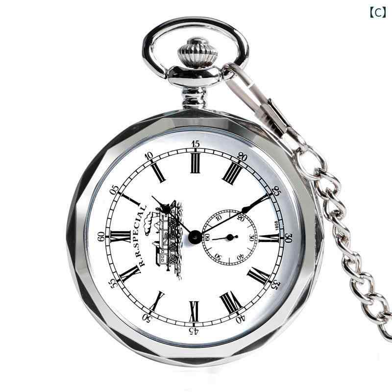 懐中時計 手巻き レトロ 機械式 おし A:青 B:シルバー C:シルバー