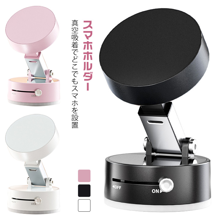 スマホホルダー スマホスタンド 真空吸 スマートフォン 携帯電話用アクセサリー スマートフォンスタンド 人気 ブラック ホワイト ピンク