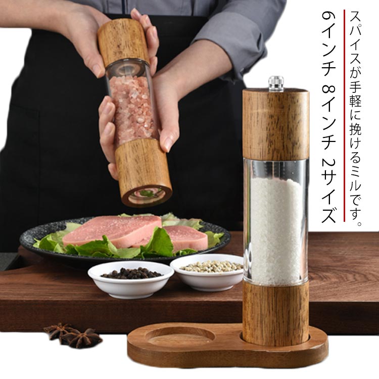 木製ペッパーミル手動 片手木製ペッパー キッチン用品 食器 調理器具 超目玉商品 6インチ 8インチ