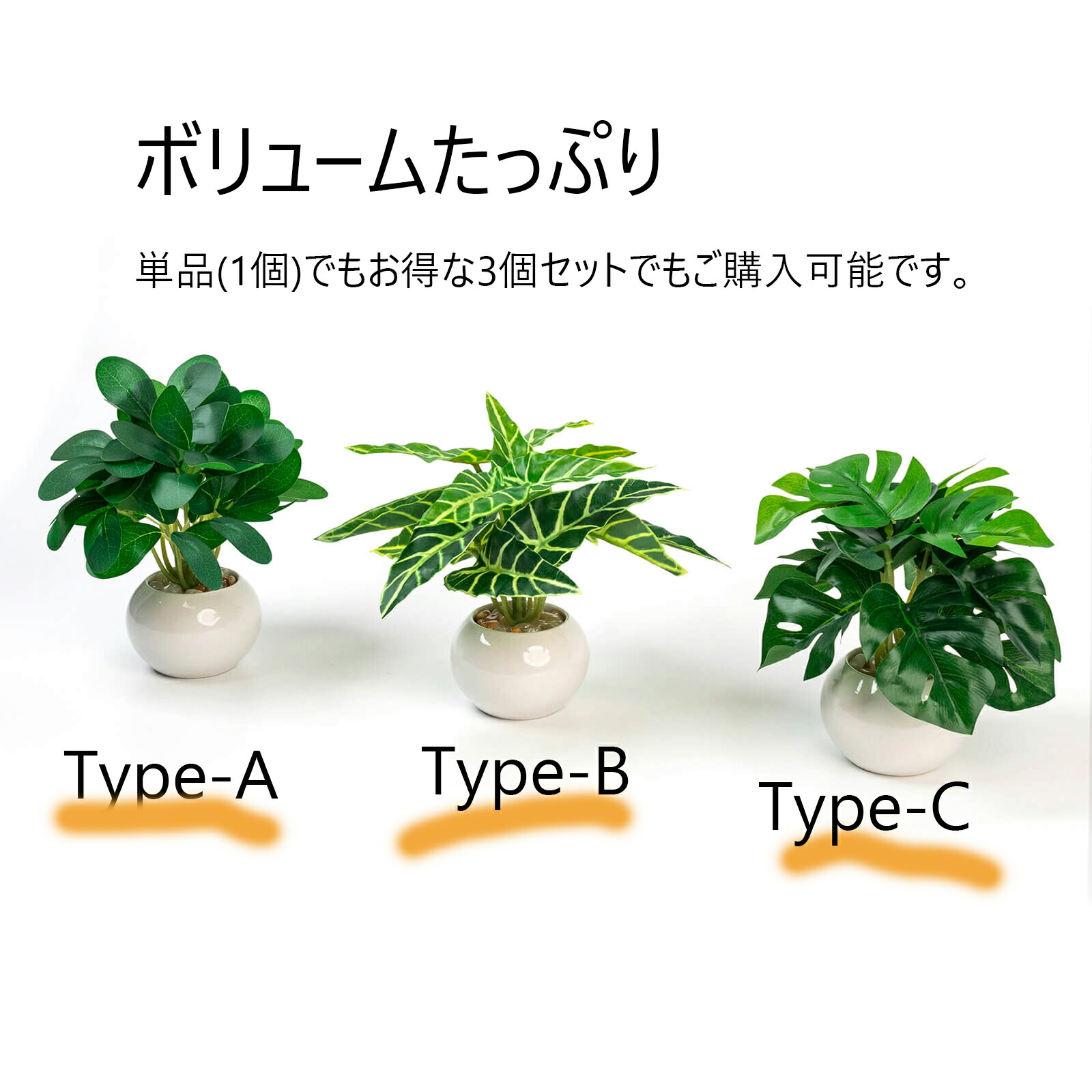 フェイクグリーン 卓上 3点セット 鉢 Type-A Tyep-B Type-C 3個セット