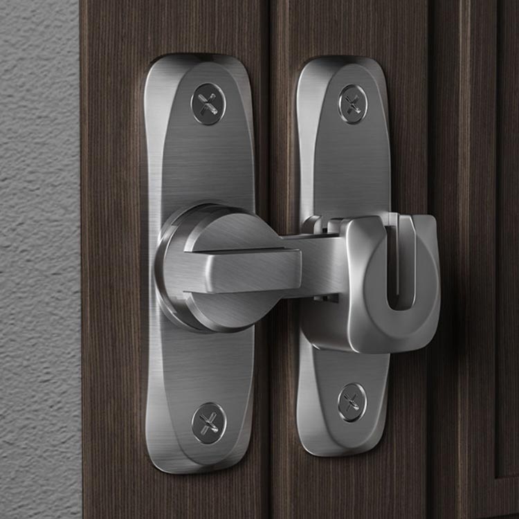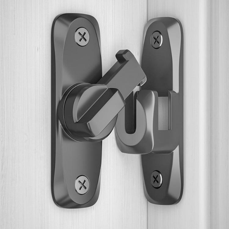 ドアロック 穴あけ不要 引き戸 後付け 90度 180度兼用 ドアバックル 亜鉛合金 ドア留め金ロック 防犯 回転式 フリップラッチロック 鍵 ロック 耐震 スライディングドア