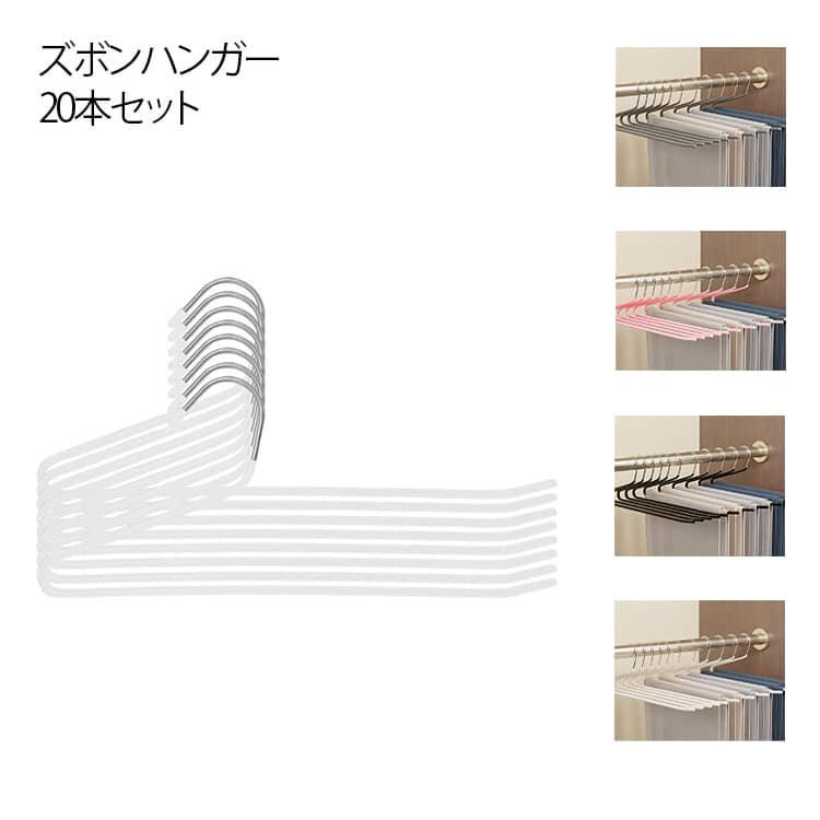 パンツハンガー ズボンハンガー 20本 ホワイト ピンク ブラック グレー