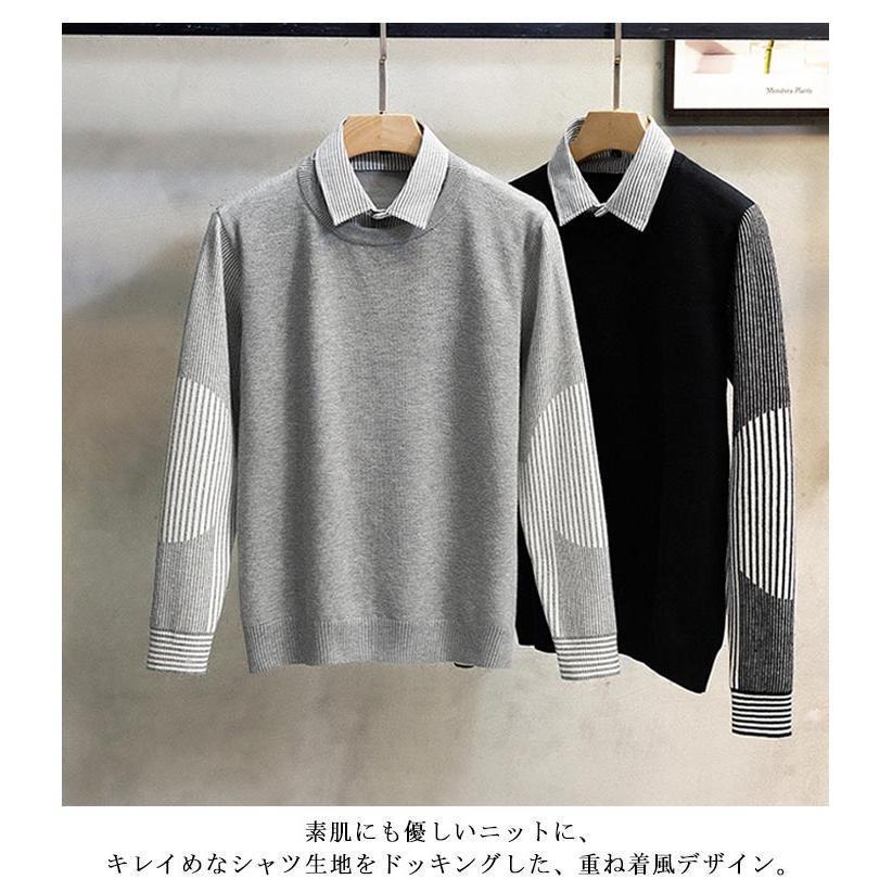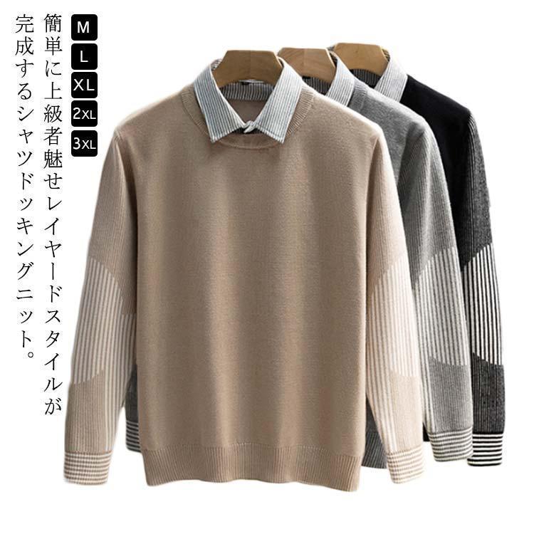 シャツドッキングニット ニット セータ メンズファッション 早い者勝ち ブラック ベージュ グレー M L XL 2XL 3XL