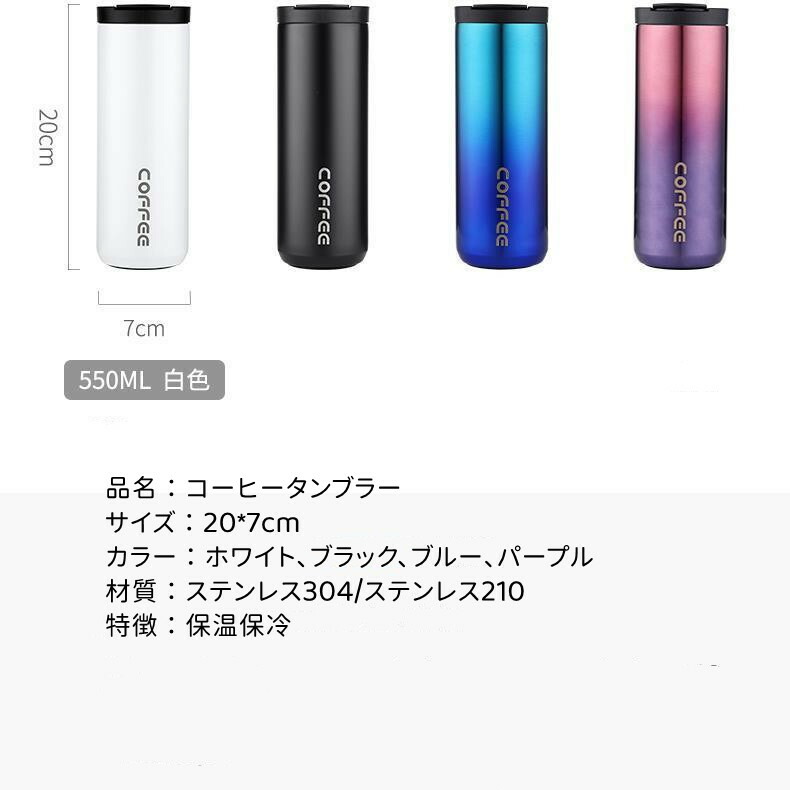 タンブラー 保温 アイスコーヒー 直飲 弁当箱 水筒 水筒 マグボトル 通販 400ML 550ML パープル ブルー ホワイト ブラック