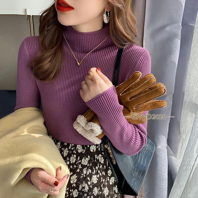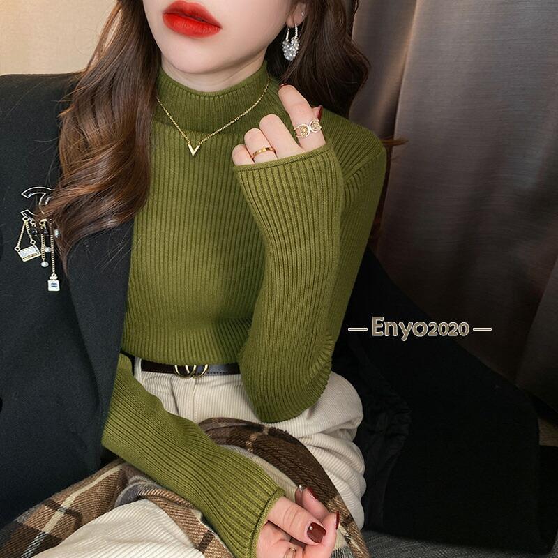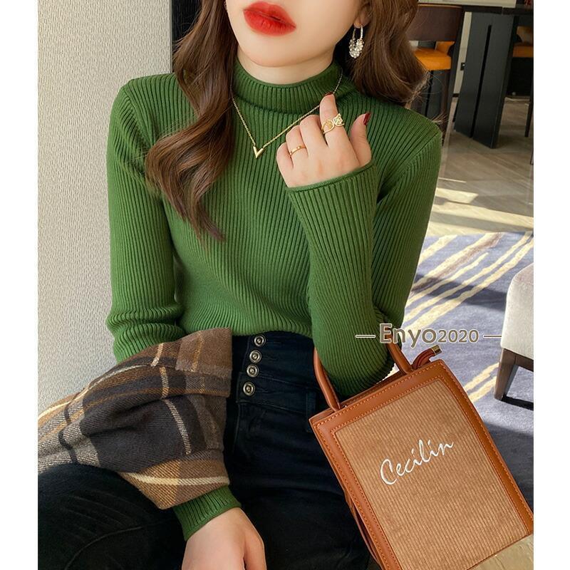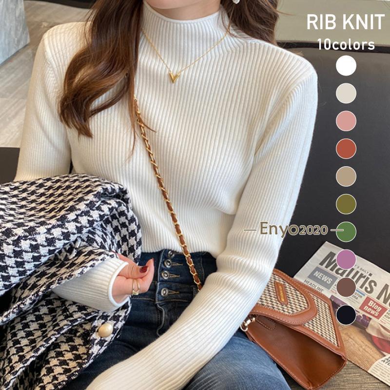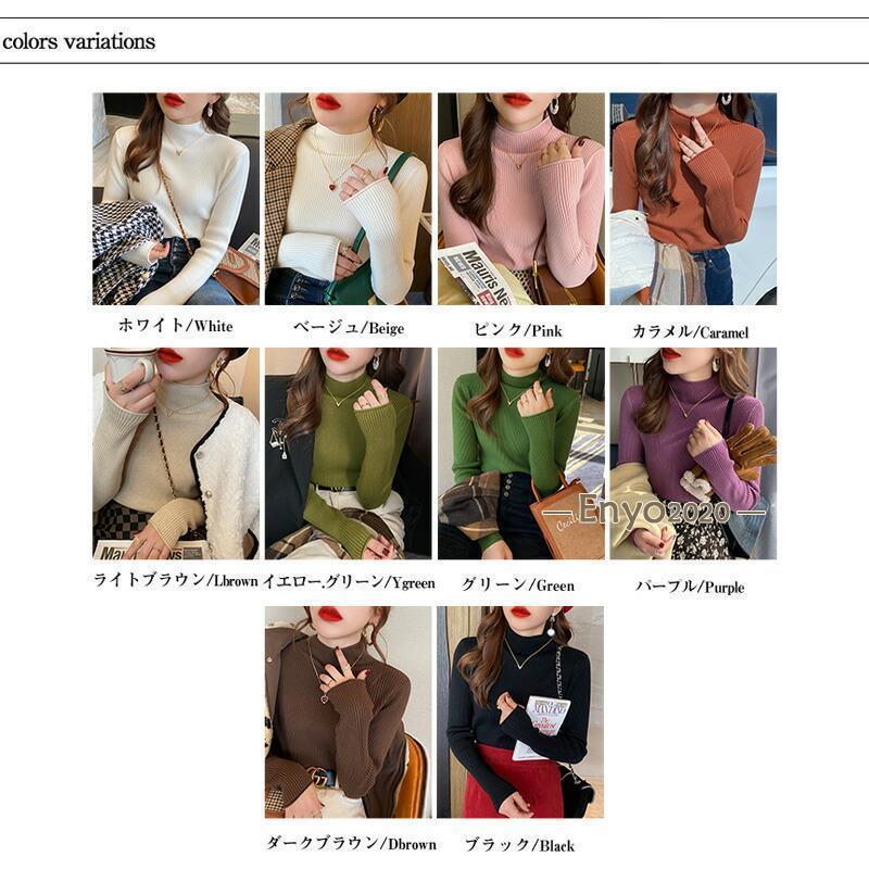 リブニット ハイネック セーター トッ トップス Tシャツ カットソー 人気 キャラメル ベージュ パープル ダークブラウン ピンク グリーン イー・グリーン ライトブラウン ブラック ホワイト