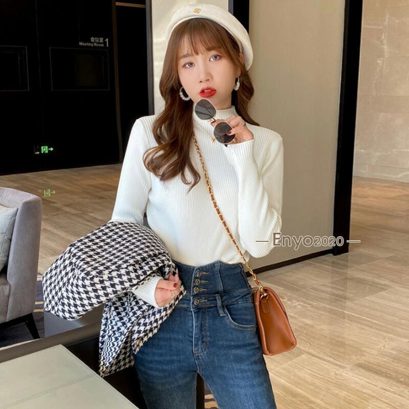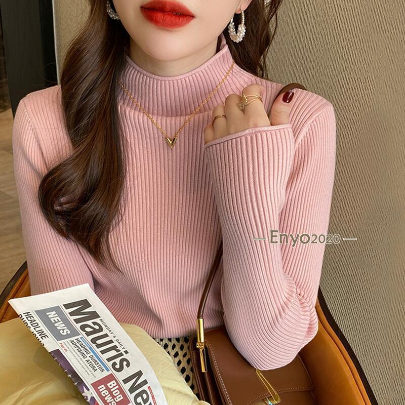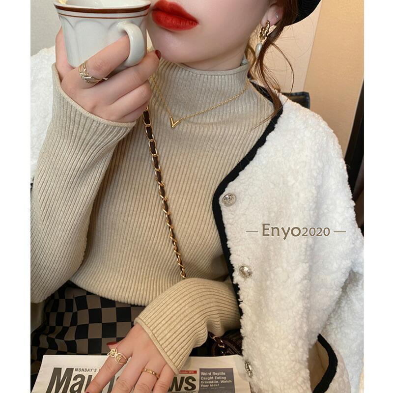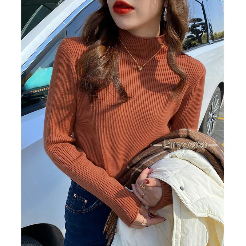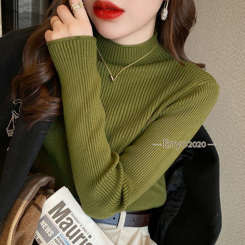 リブニット ハイネック セーター トッ トップス Tシャツ カットソー 人気 キャラメル ベージュ パープル ダークブラウン ピンク グリーン イー・グリーン ライトブラウン ブラック ホワイト