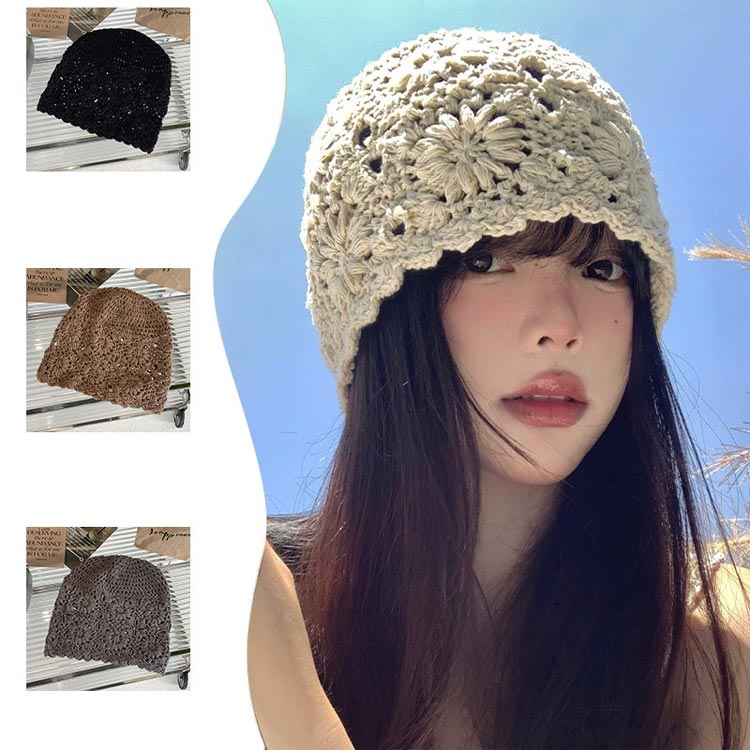 フラワー クロシェハット レディース バッグ 小物 ブランド雑貨 人気 ベージュ ブラック イエロー ダークブルー ライトブルー コーヒー ブラウン ワイン グレー