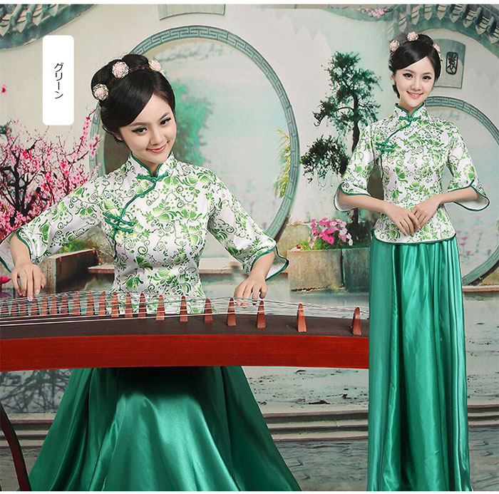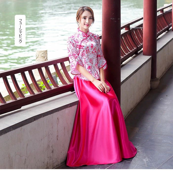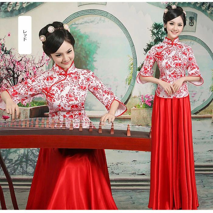 チャイナ服 中華服 チャイナドレス ス レディースファッション 新登場! ブルー フューシャピンク レッド グリーン XS S M L XL 2XL 3XL
