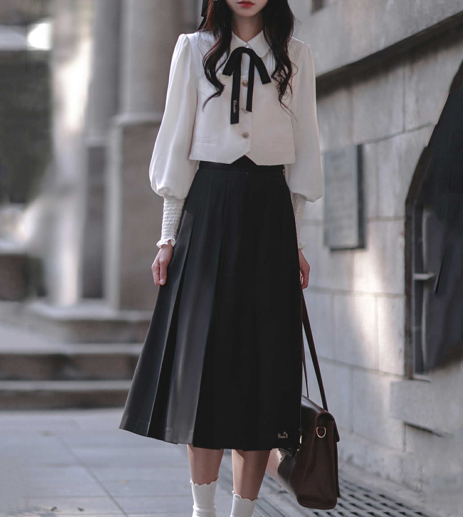 シアースリーブ ドッキングシャツ ボウタイシャツブラウス