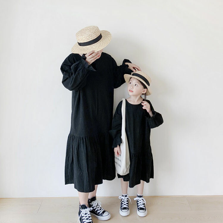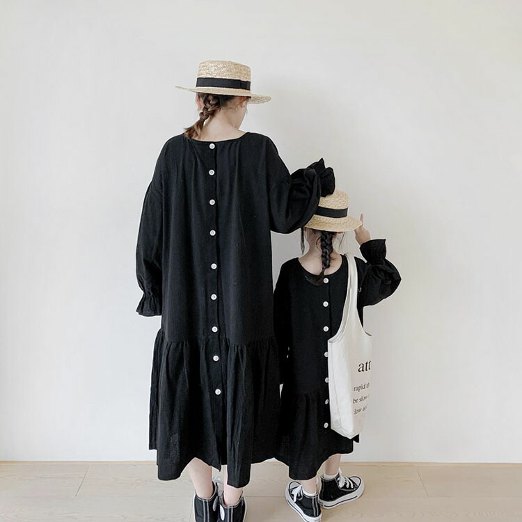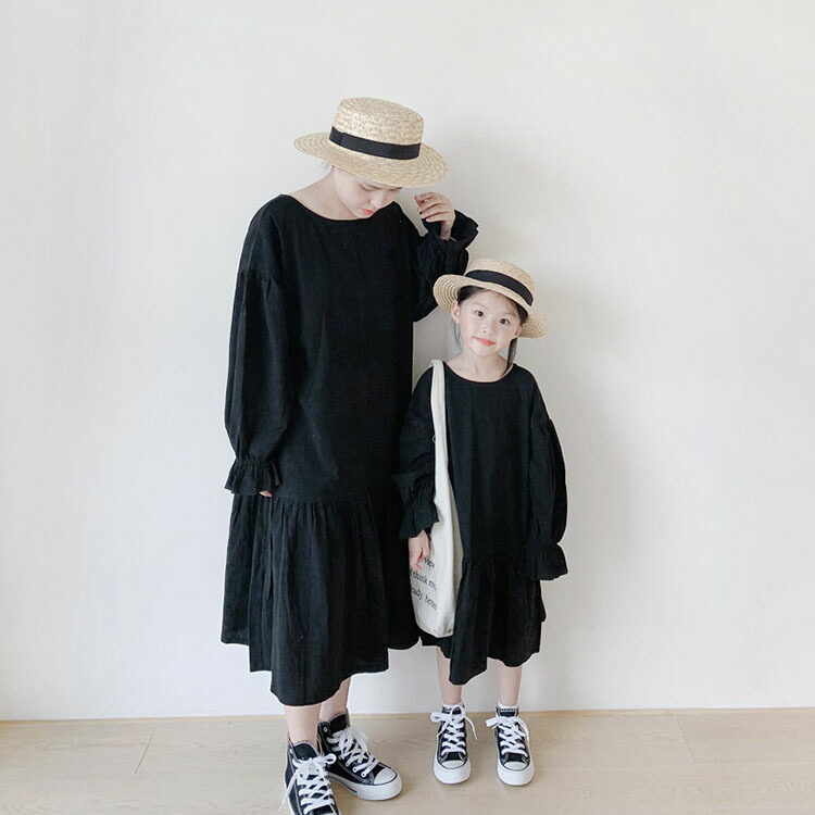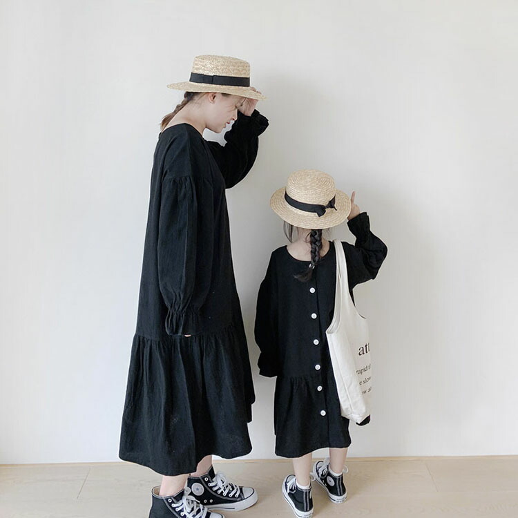 親子ペア ワンピース ロングシャツ マ 90 100 110 120 130 140 150 ママ・M ママ・L