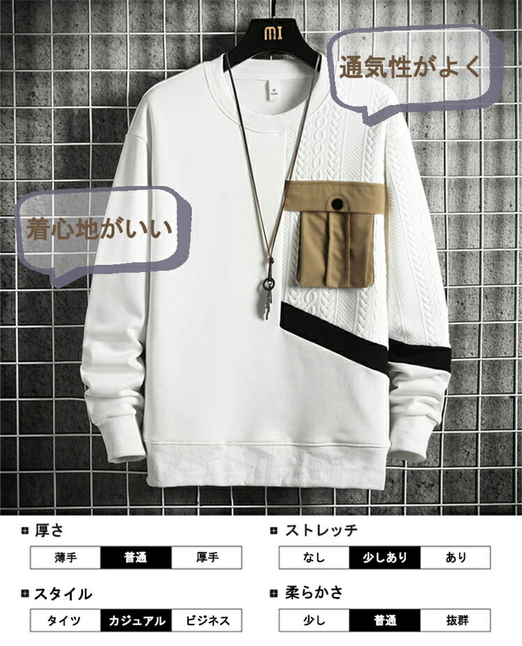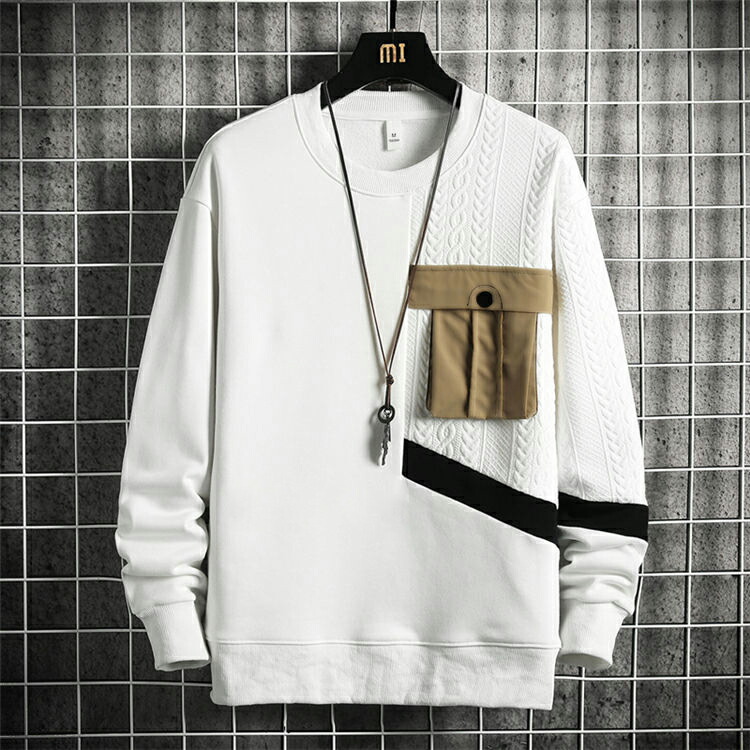 トレーナー メンズ 胸ポケット スウェ メンズファッション 人気 ブラック ホワイト ベージュ M L XL 2XL 3XL 4XL