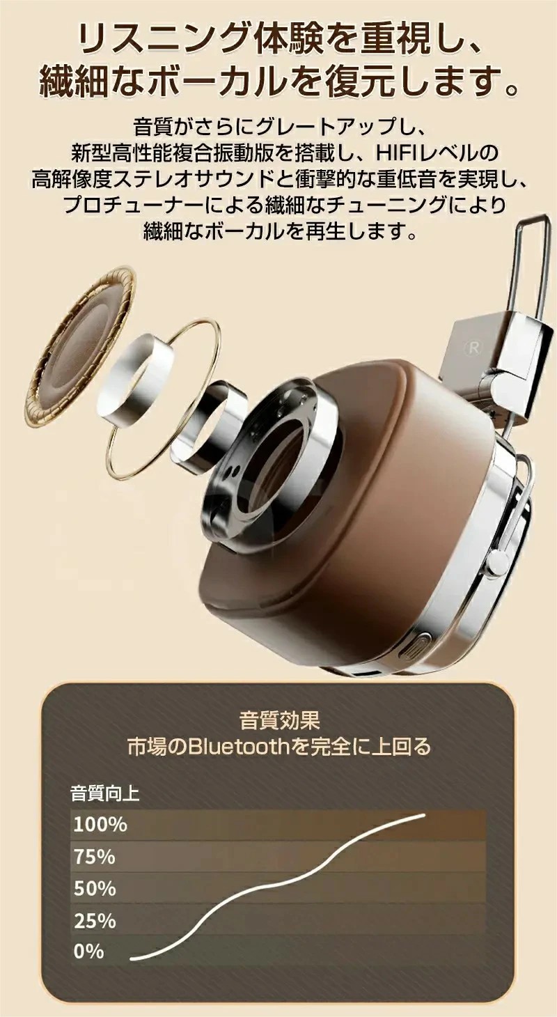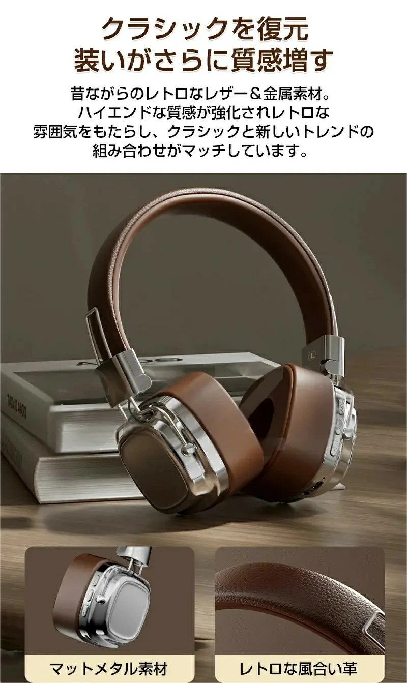 ヘッドホン bluetooth 5.3 ブラウン シルバーブラック ブラック