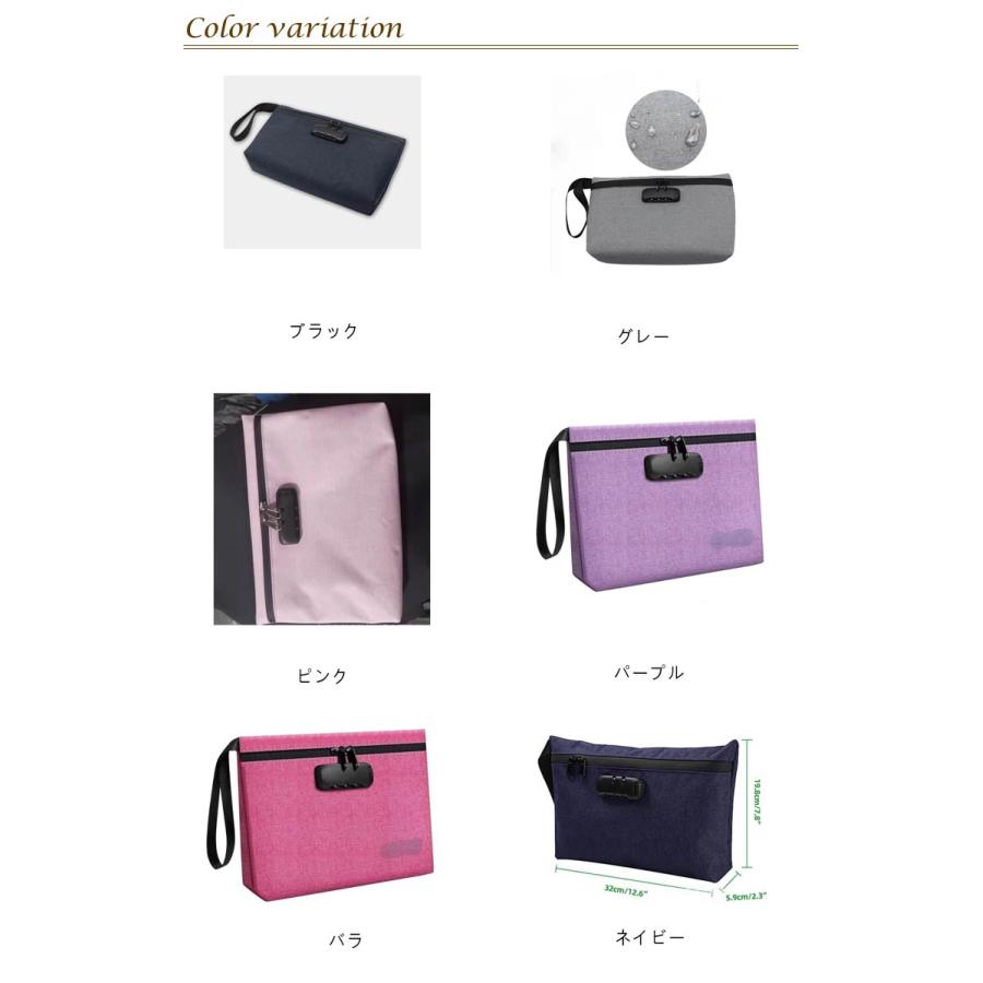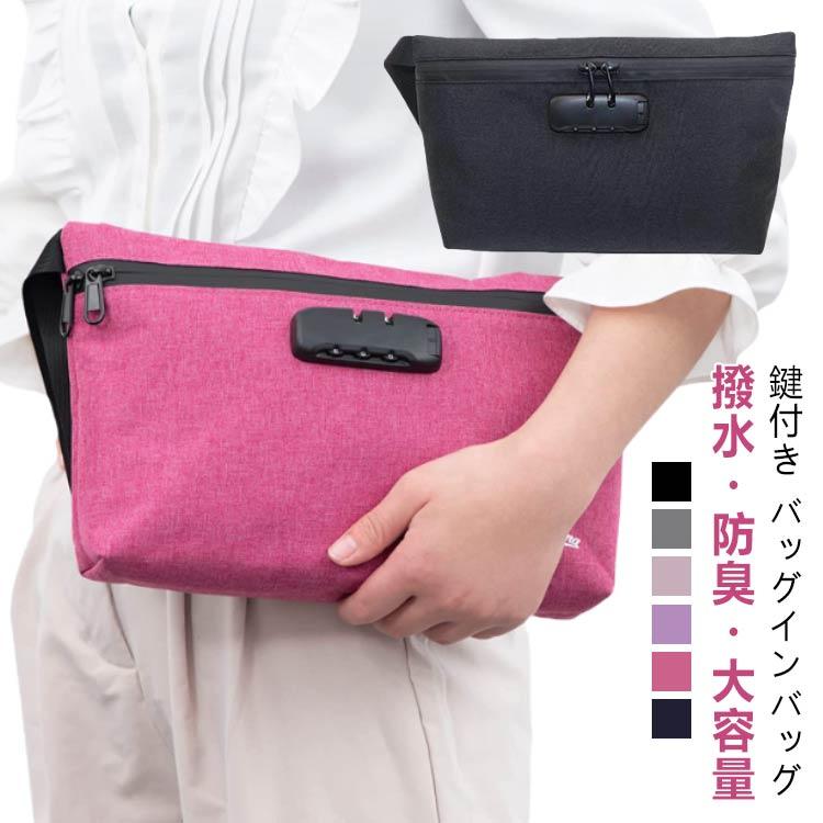 鍵付きポーチ 貴重品入れ 防犯バッグ バッグ 小物 ブランド雑貨 豊富 ブラック バラ ネイビー グレー ピンク パープル