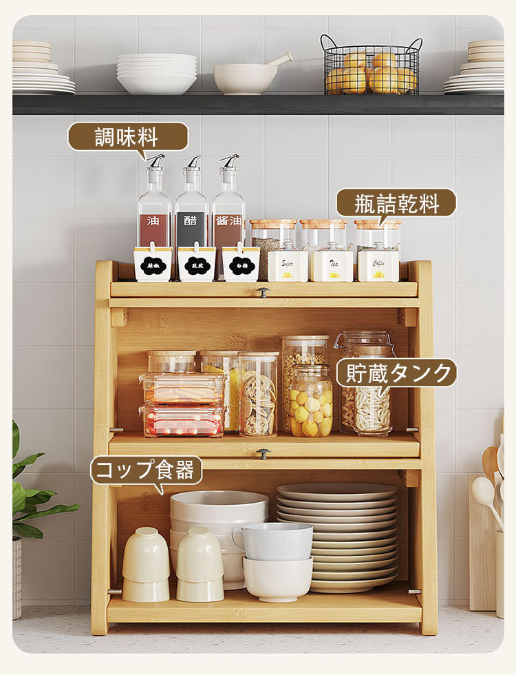 収納ケース 竹製 おしゃれ 食器 調味 キッチン用品 食器 調理器具 早い者勝ち 二段40CM 二段50CM 三段40CM 三段50CM 茶色 コーヒー色 ベージュ